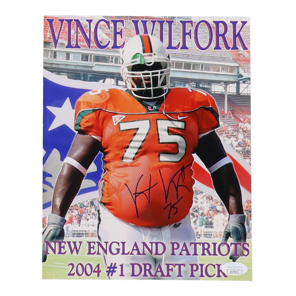 Photo measures 8" x 10" in size and has been hand-signed by Vince Wilfork.