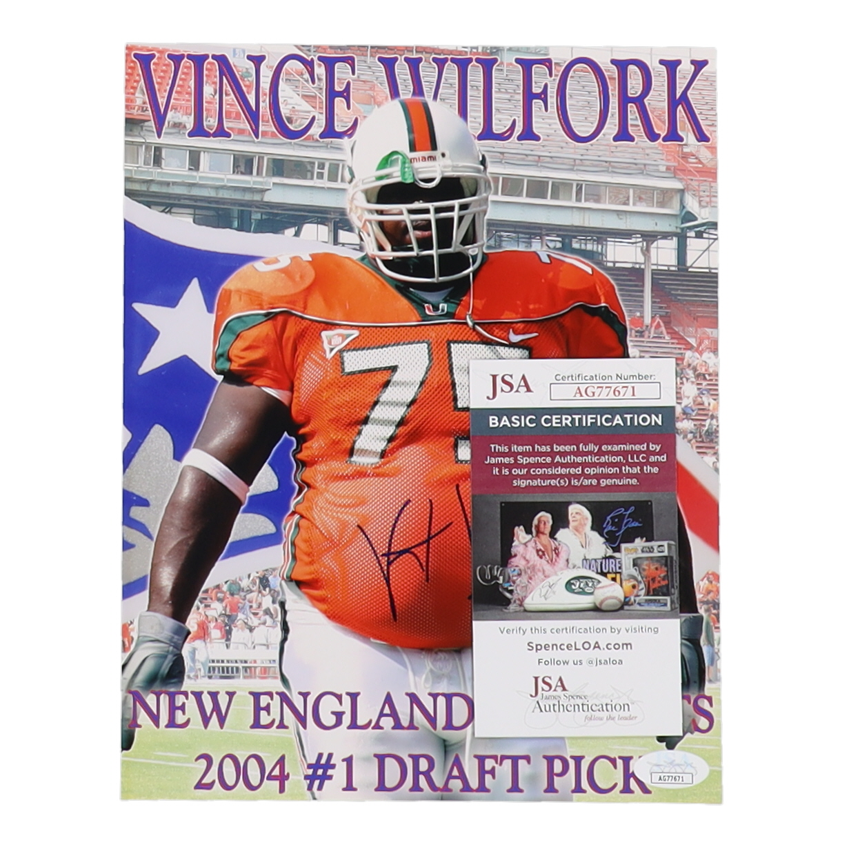 Vince Wilfork Signed Miami Hurricanes 8x10 Photo (JSA)