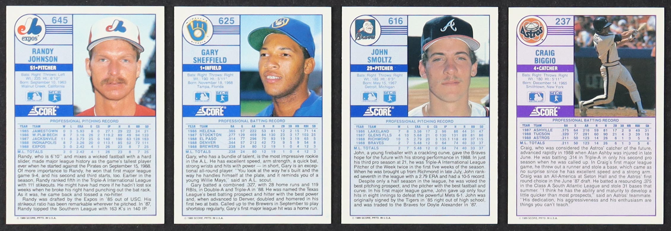 1989 Score Baseball Complete Set of (660) Cards with Craig Biggio #237 RC, Randy Johnson #645 RC, Barry Bonds #127, John Smoltz #616 RC