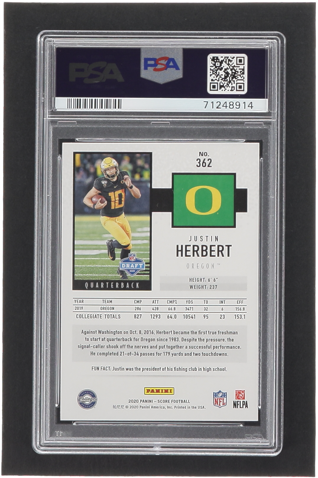Justin Herbert 2020 Score #362 RC (PSA 10)