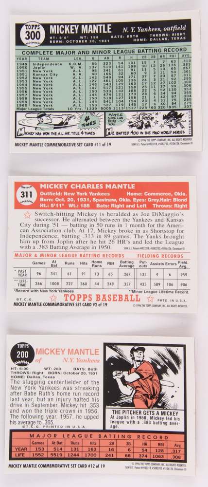 Complete Set of (19) 1996 Topps Mickey Mantle Finest Reprint Baseball Cards