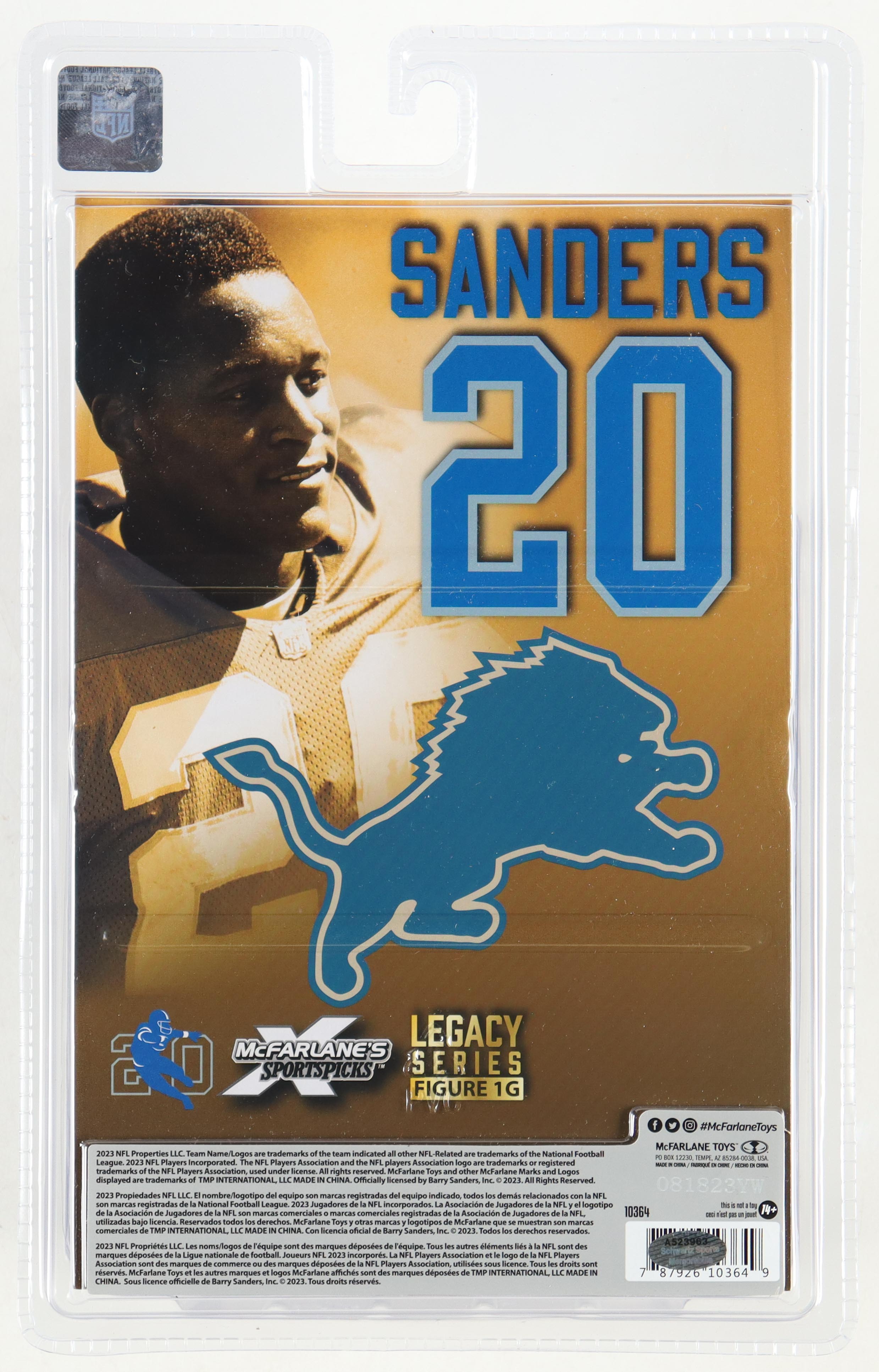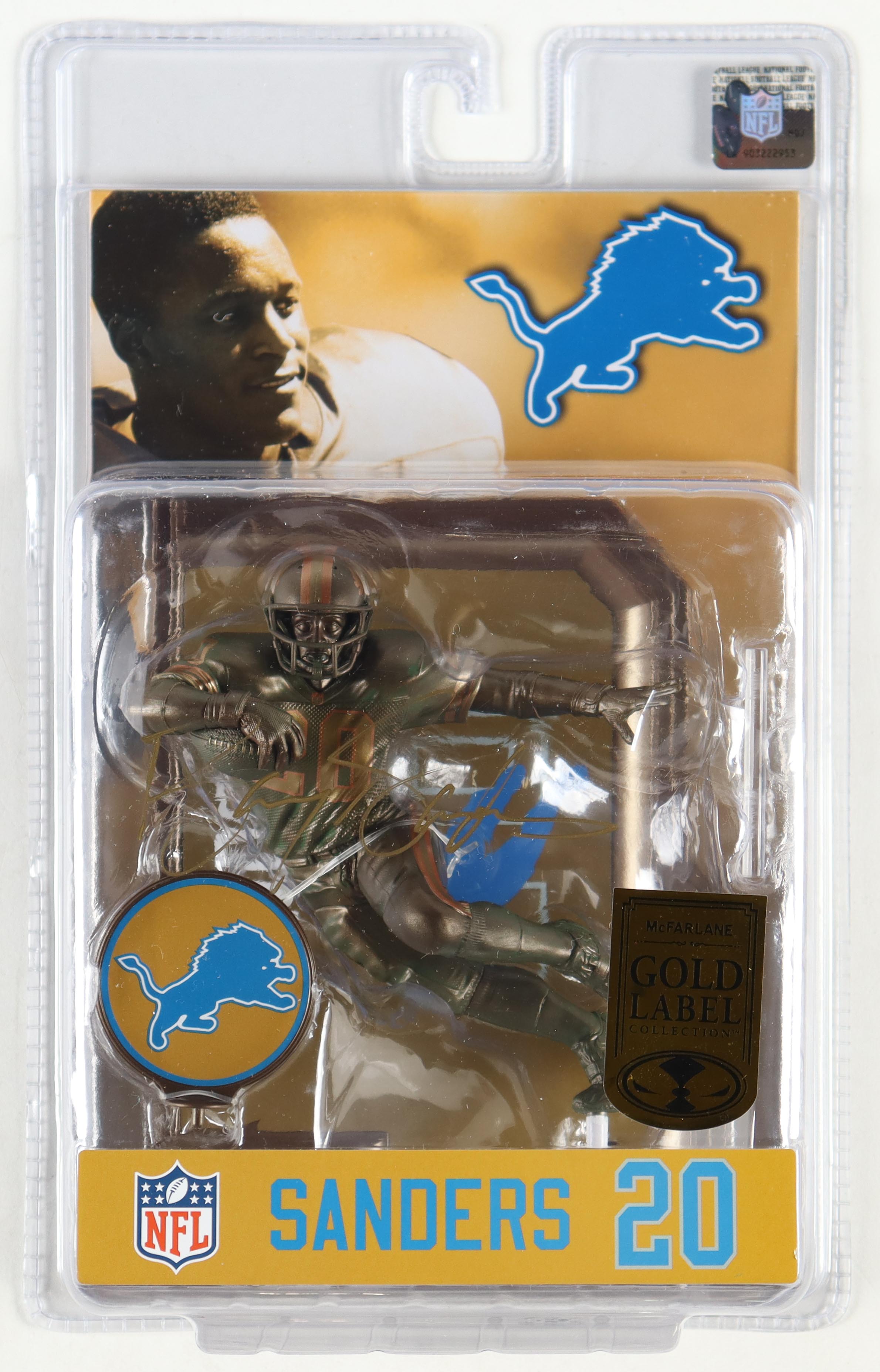 Bronze McFarlane Toys figurine has been hand-signed on the front packaging by Barry Sanders (Detroit Lions, HOF).