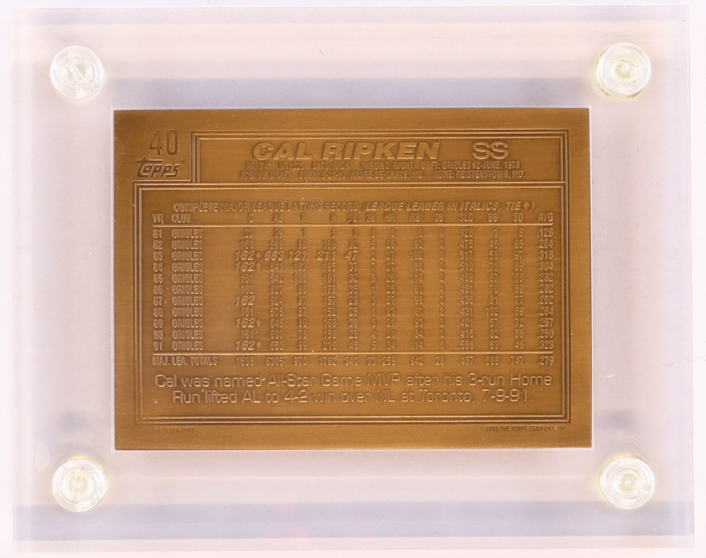 Cal Ripken Jr. LE The Highland Mint 1992 Topps Bronze Mint-Card #40 with Display Case
