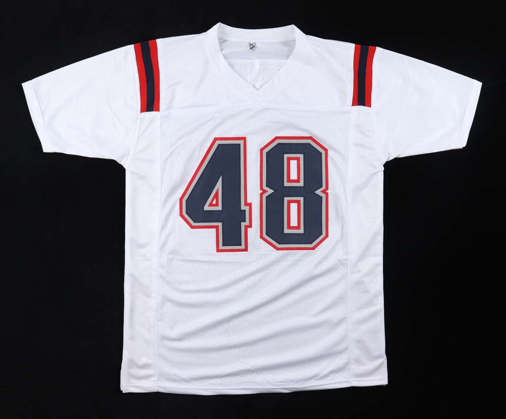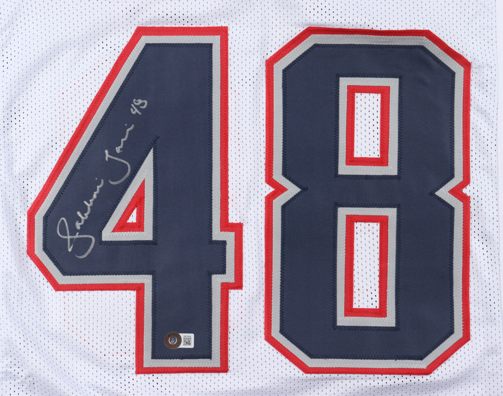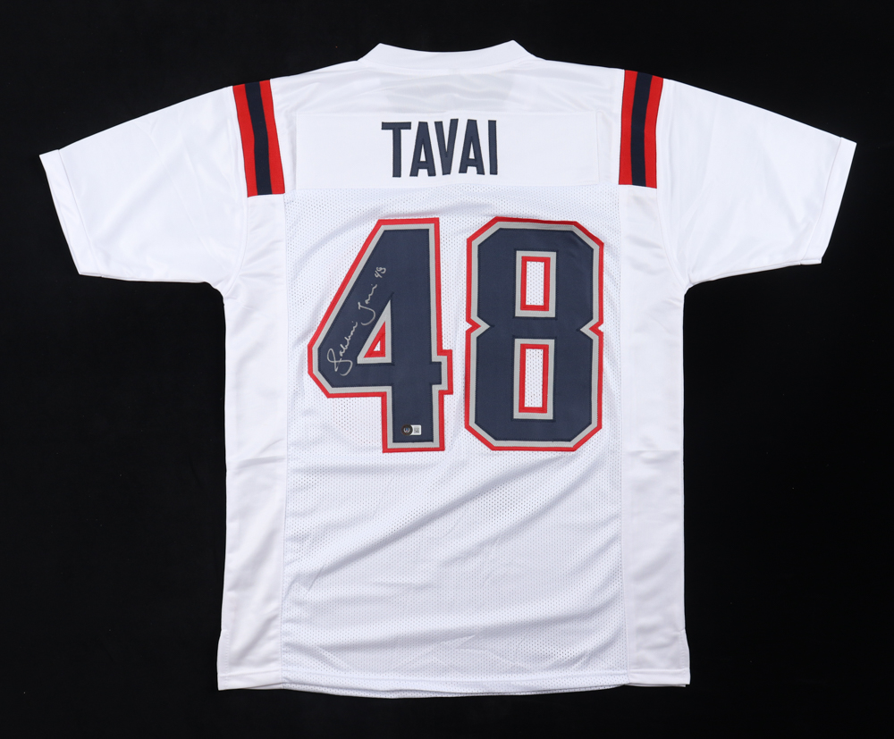 Custom jersey. Everything is sewn on, size XL. Hand-signed by Jahlani Tavai.