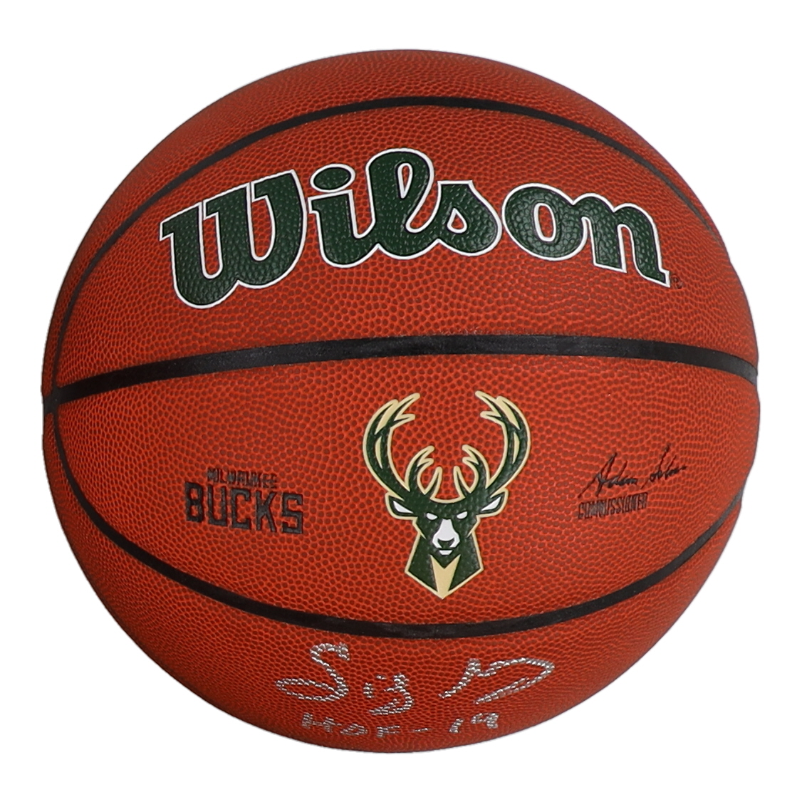 Wilson Milwaukee Bucks Logo Basketball. Hand-signed and inscribed by Sidney Moncrief (HOF).