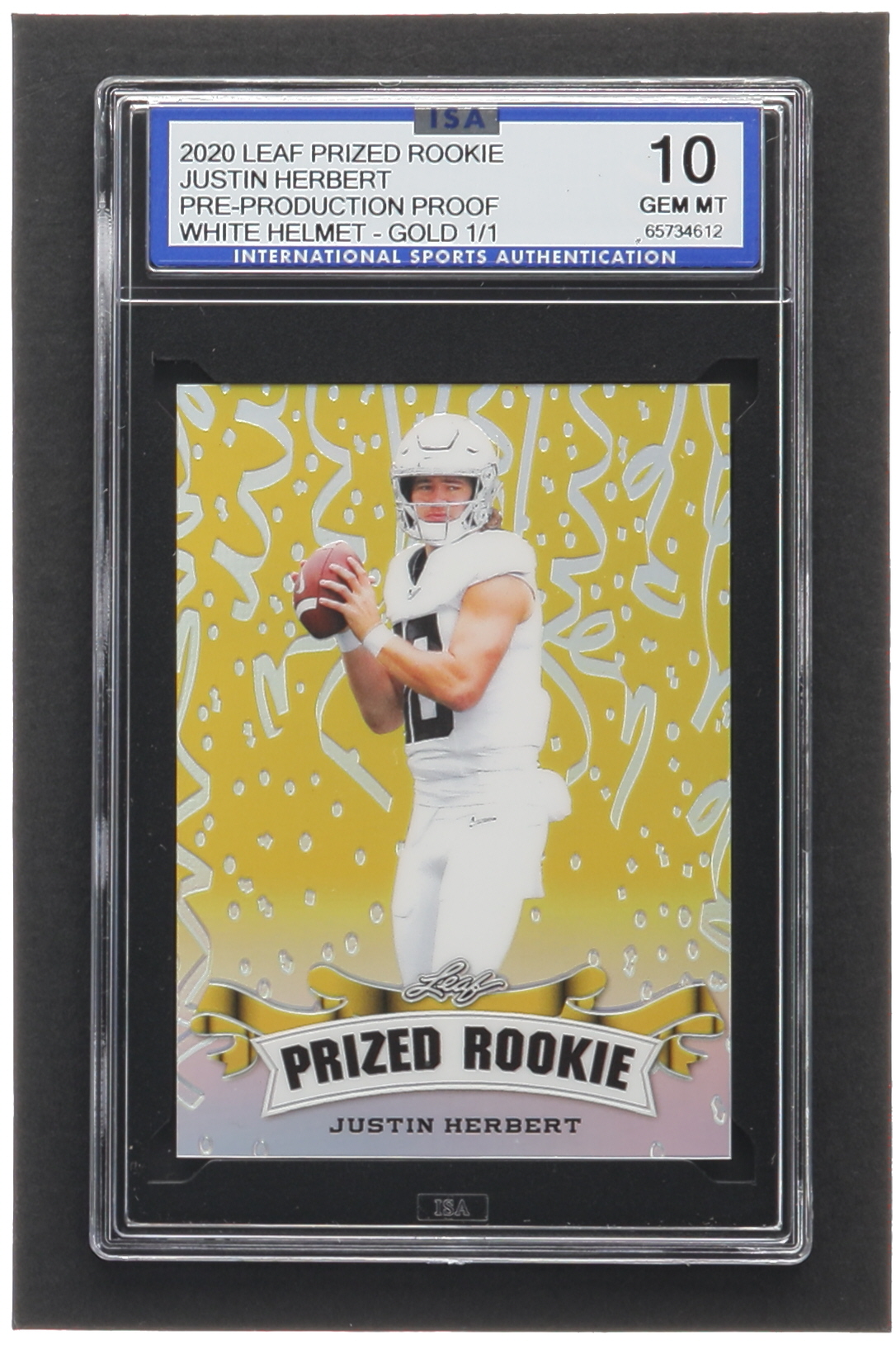Justin Herbert 2020 Leaf Metal Special Release Prized Rookie Rainbow Gold Pre-Production Proof #NNO RC #1/1 RC (ISA 10)