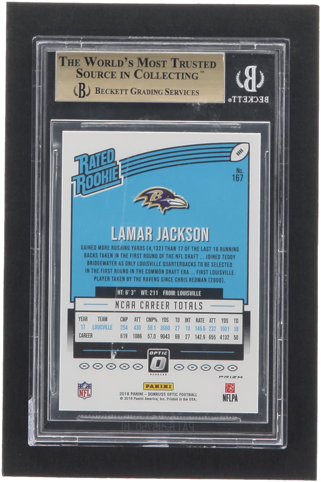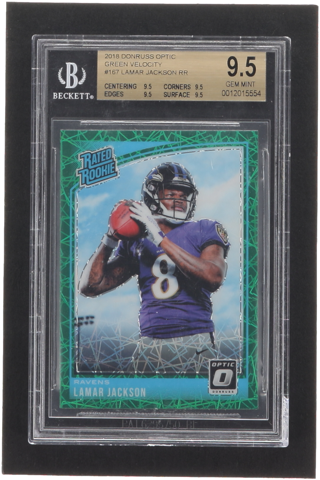 Lamar Jackson 2018 Donruss Optic Green Velocity #167 RR RC (BGS 9.5)