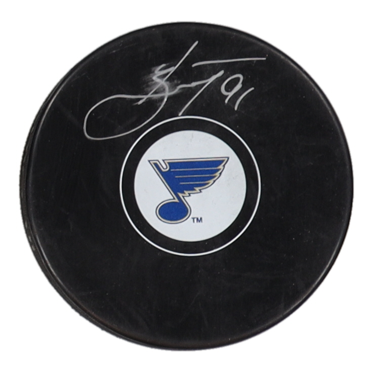 St. Louis Blues logo hockey puck. Hand-signed by Vladimir Tarasenko.