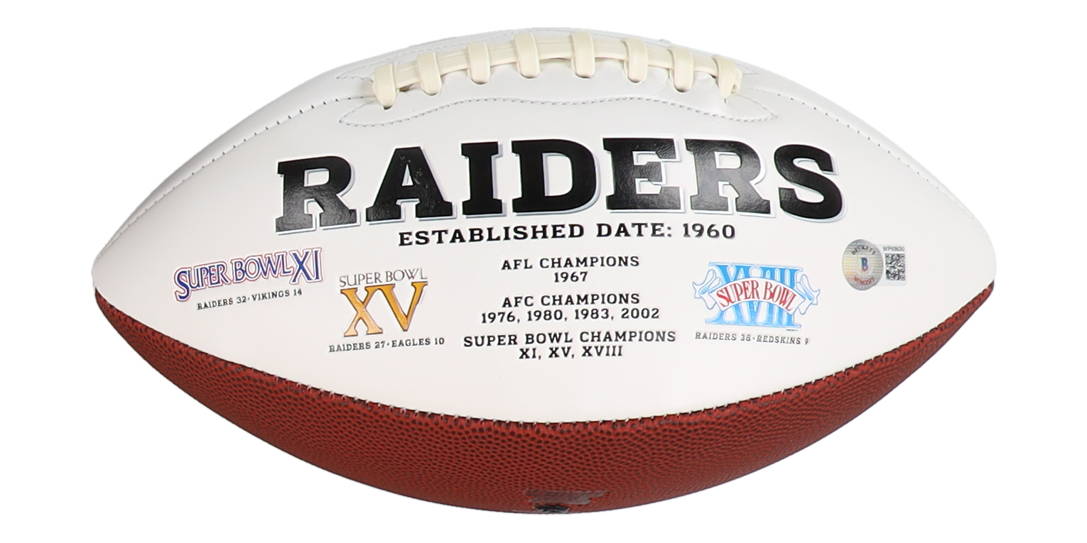 Oakland Raiders logo football has been hand-signed by Shane Lechler. Please note, signature has bled.
