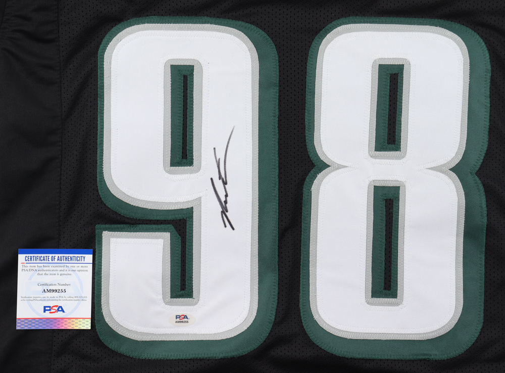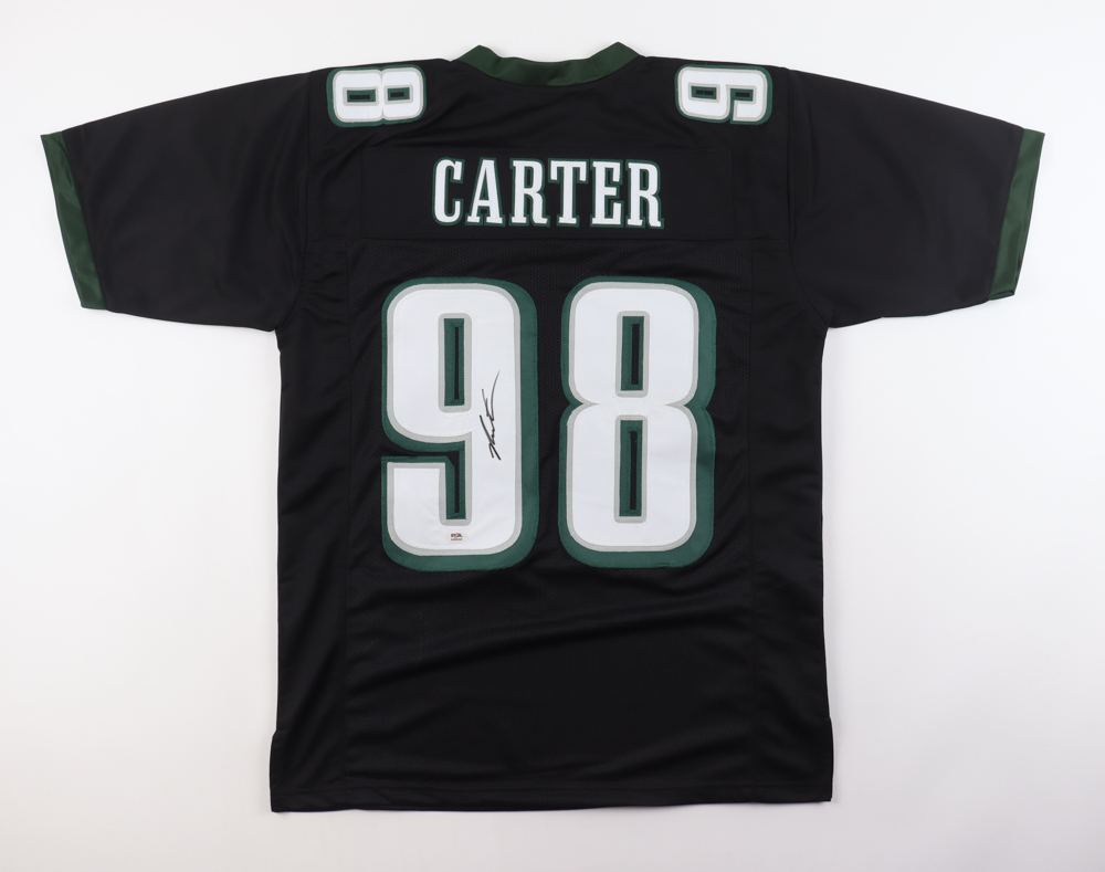 Custom jersey. Everything is sewn on, size L. Hand-signed by Jalen Carter.