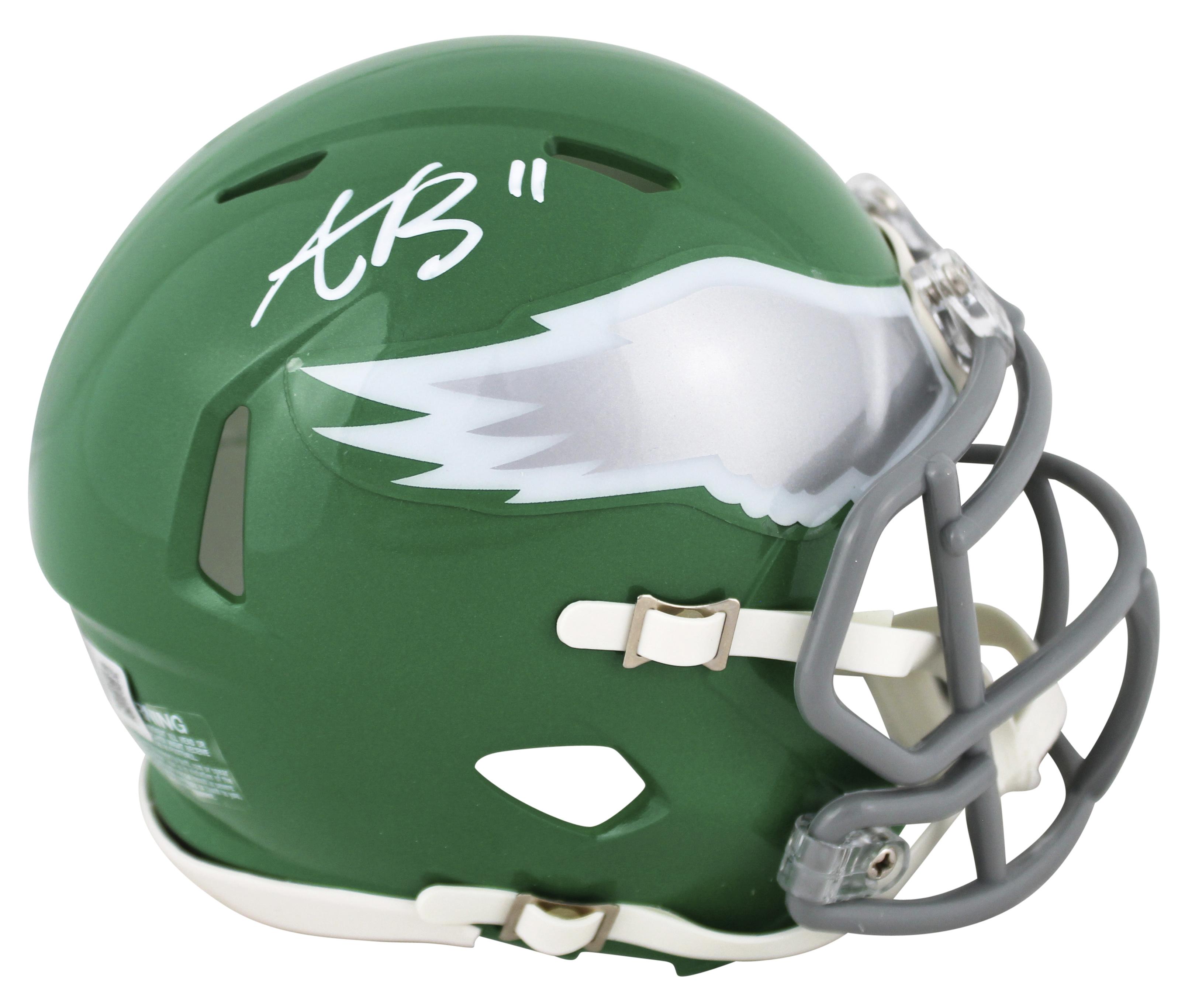 Riddell Philadelphia Eagles Speed mini helmet has been hand-signed by A.J. Brown.