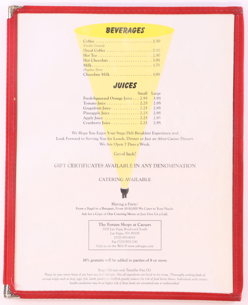 Pete Rose Signed "Stage Deli Of New York" Restaurant Menu (PSA)