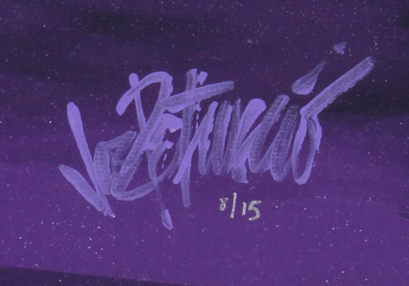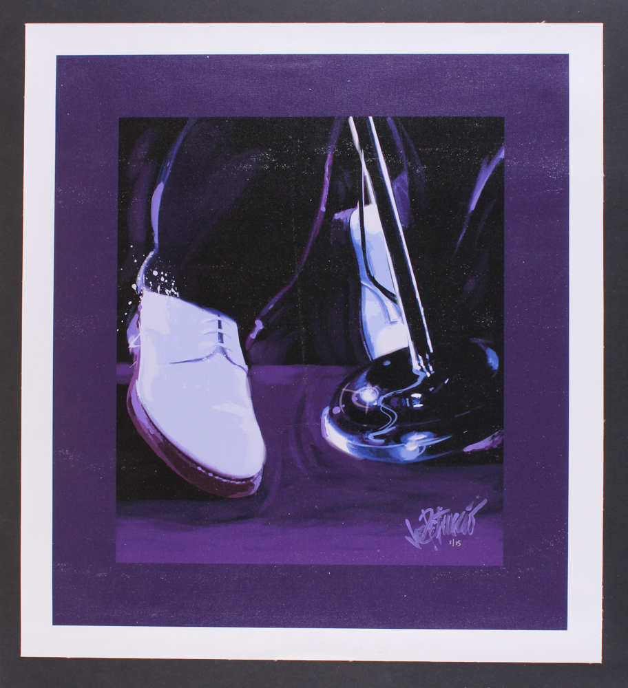 Created by Joe Petruccio, the official artist for Graceland, as an exclusive piece for Elvis Week 2015. A simple yet profound image of Elvis’ shoe against a regal purple background. Signed by Joe Petruccio and limited to only 15 pieces since the art was produced for Elvis Week 2015.