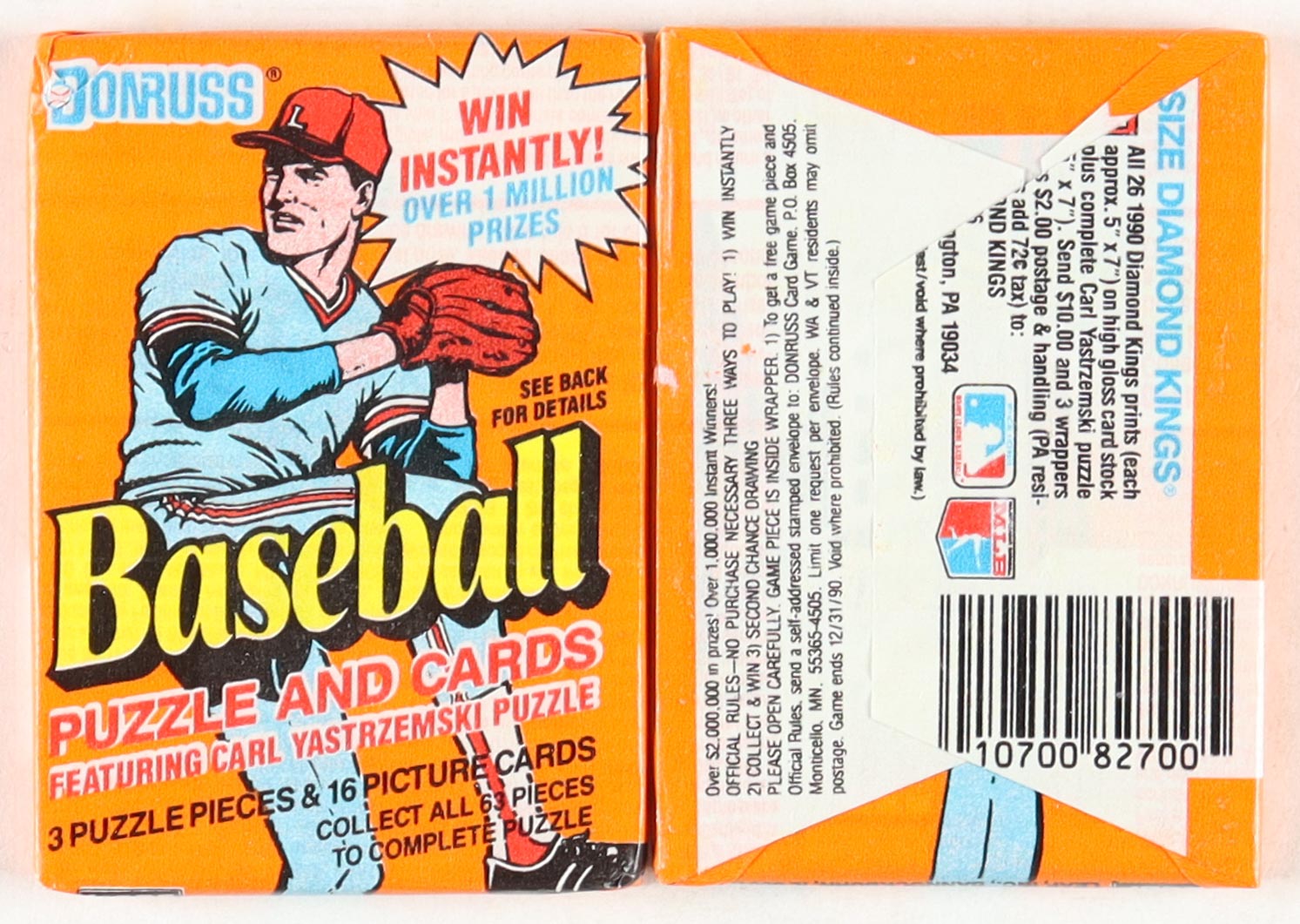 The 1990 Donruss set contains 716 standard-size cards. The card fronts feature bright red borders. Subsets include Diamond Kings (1-27) and Rated Rookies (28-47). The set was the largest ever produced by Donruss, unfortunately it also had a large number of errors which were corrected after the cards were released. Most of these feature minor printing flaws and insignificant variations that collectors have found unworthy of price differentials. Rookie Cards of note include Juan Gonzalez, David Justice, John Olerud, Dean Palmer, Sammy Sosa, Larry Walker and Bernie Williams.