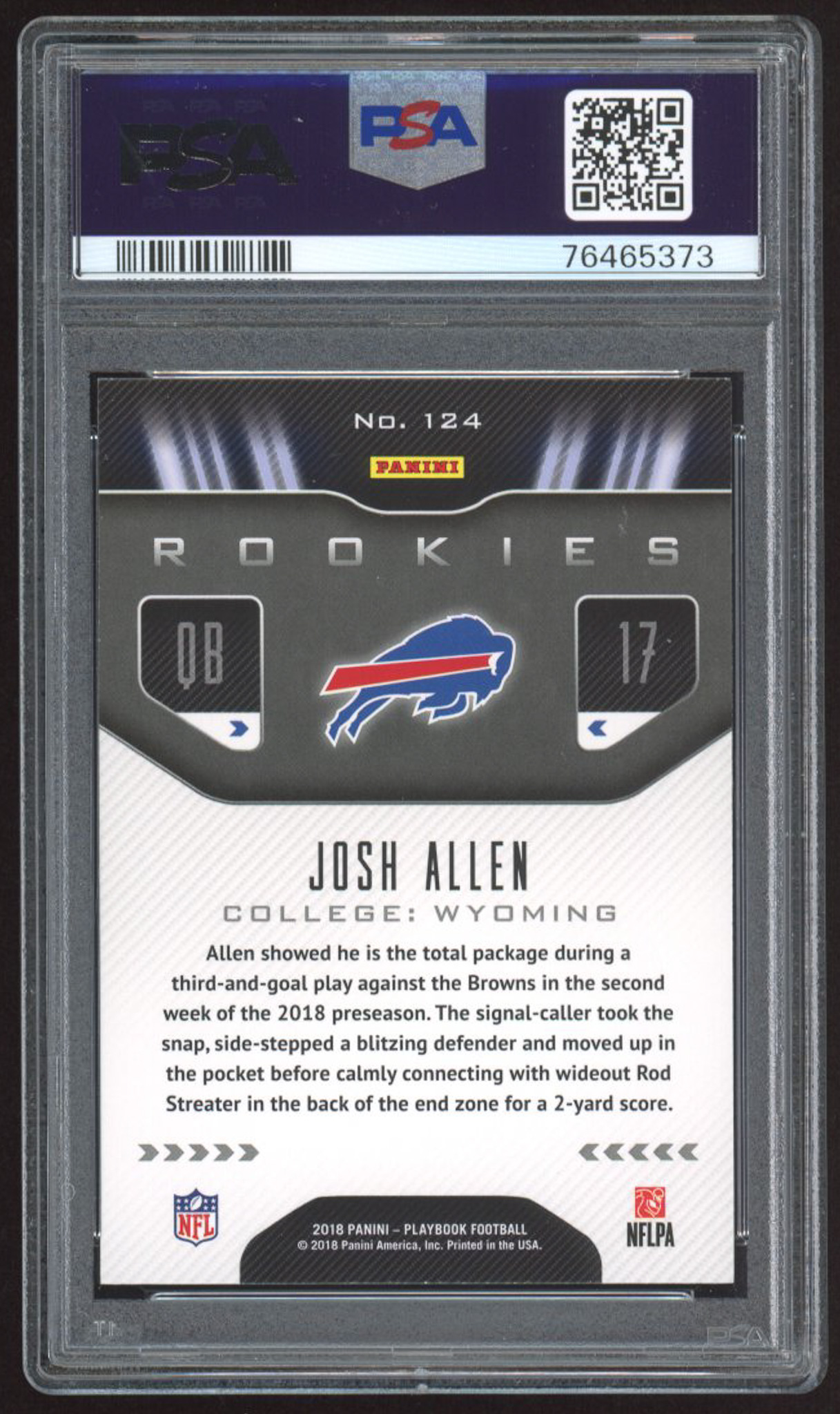 Josh Allen 2018 Panini Playbook #124 RC (PSA 10)