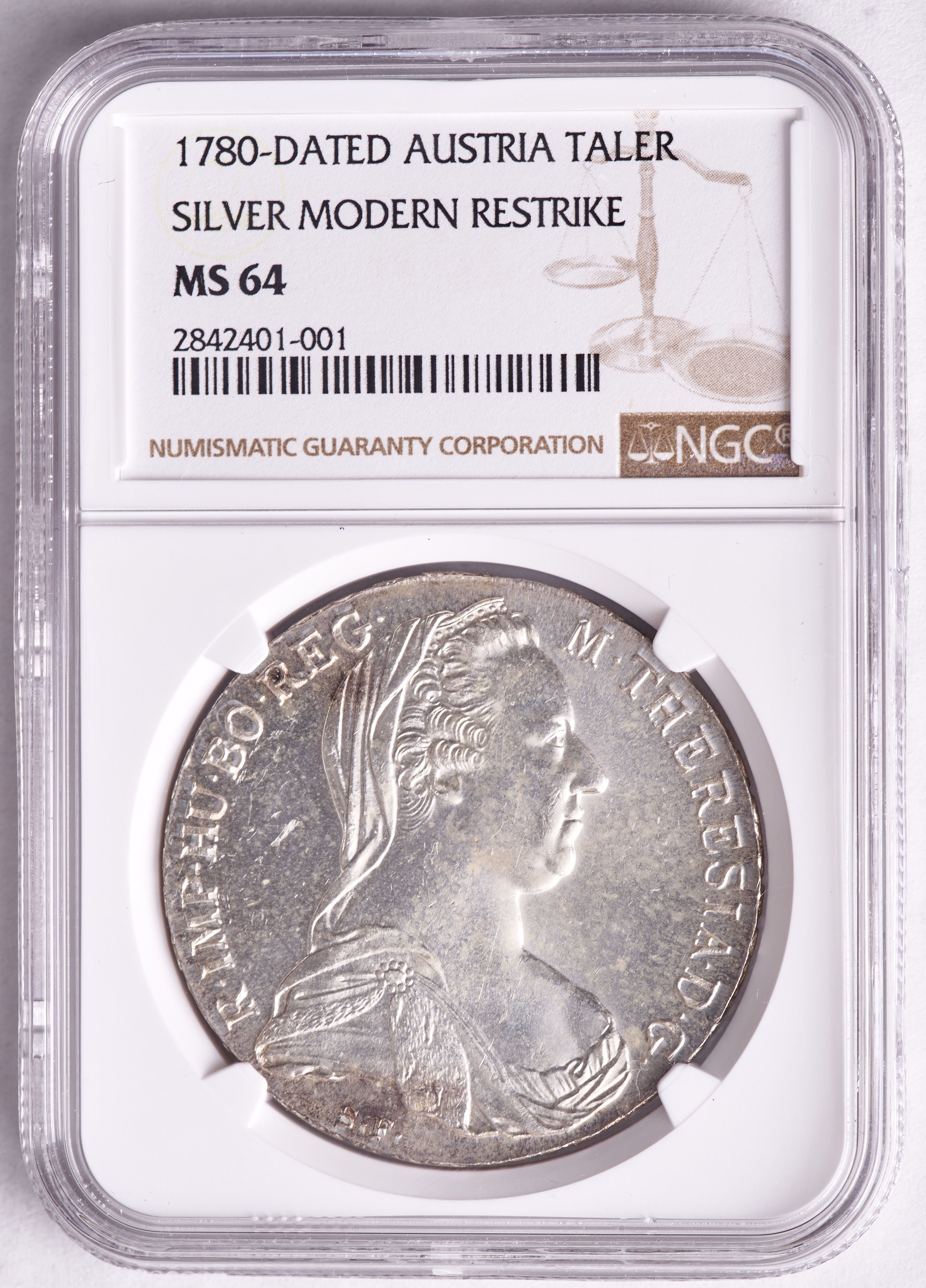 Modern Restrike Austria 1780-Dated Silver Thaler (NGC MS64)