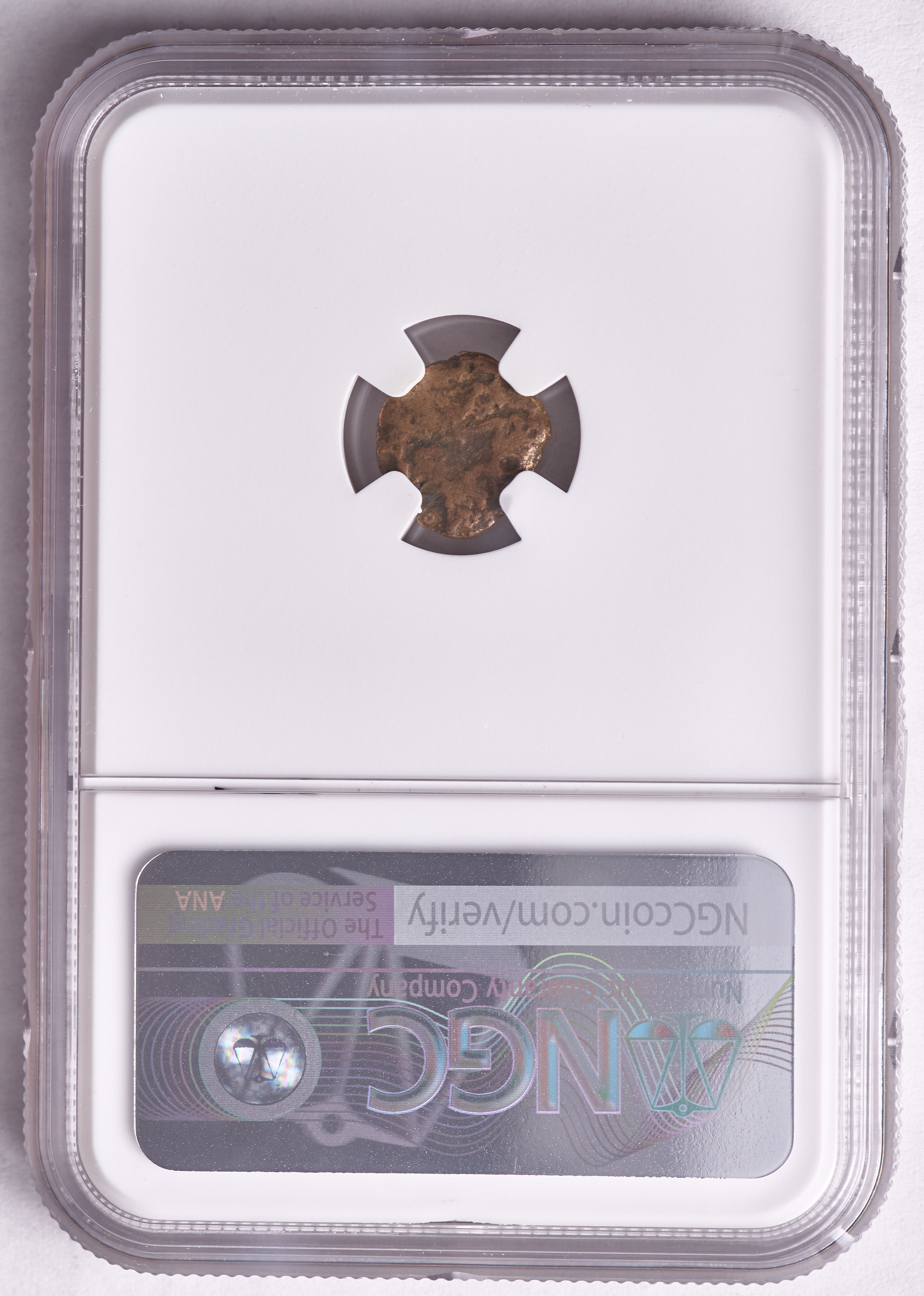Very rare authentic bronze Mite coin. The coin has been authenticated and encapsulated by NGC (Numismatic Guaranty Corporation).