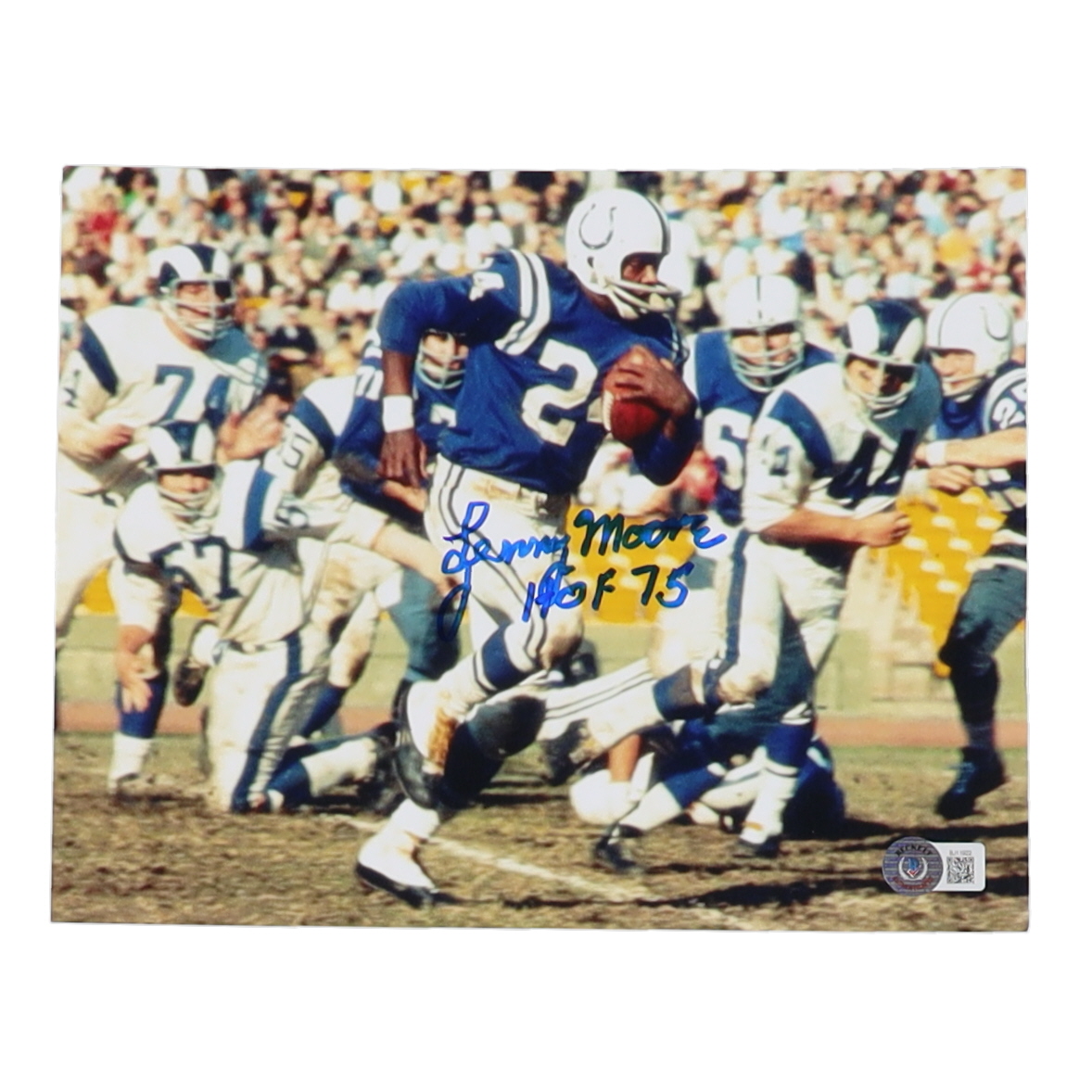 Lenny Moore Signed Colts 8x10 Photo Inscribed "HOF 75" (Beckett)