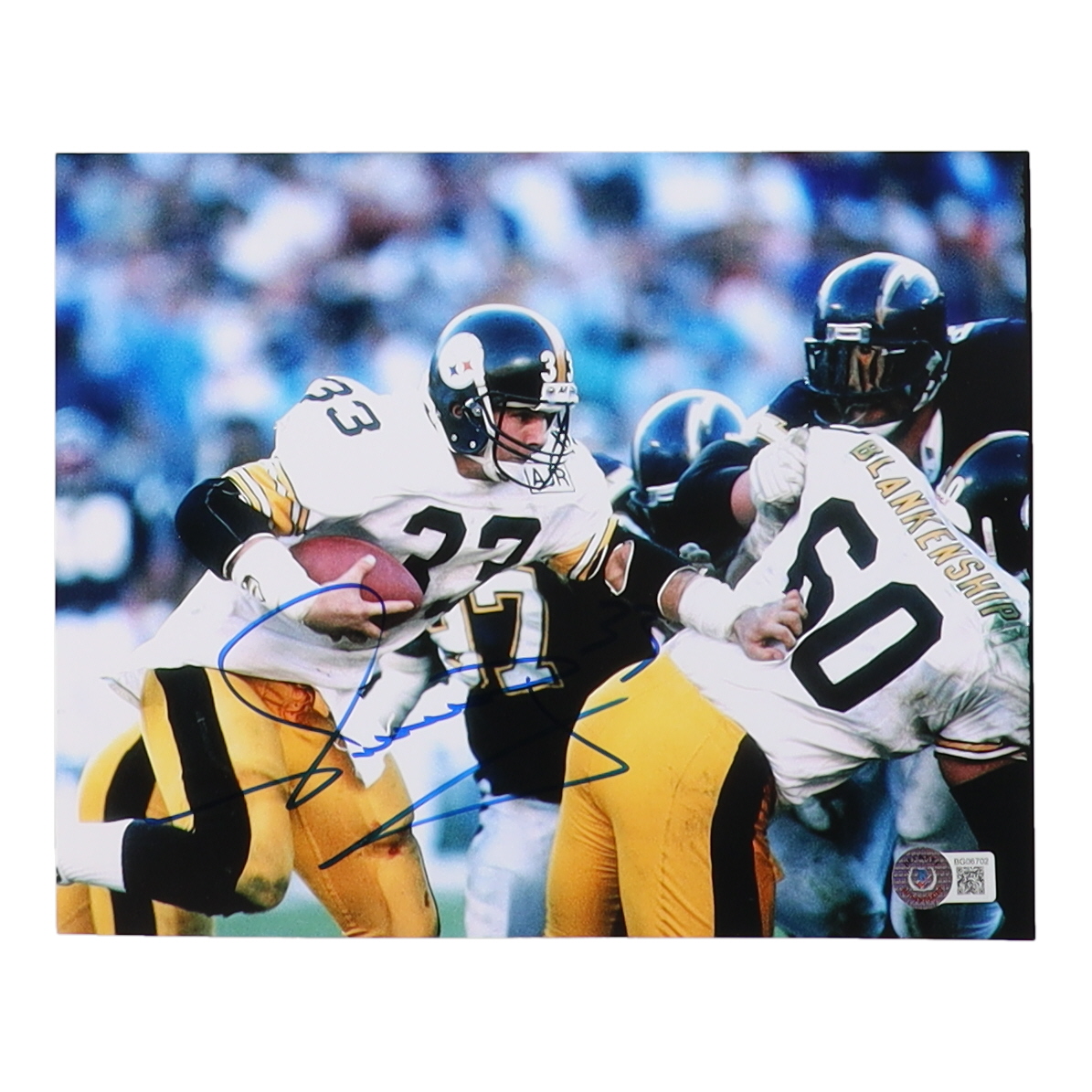 Photo measures 8" x 10" in size. Hand-signed by Merril Hoge (Pittsburgh Steelers).