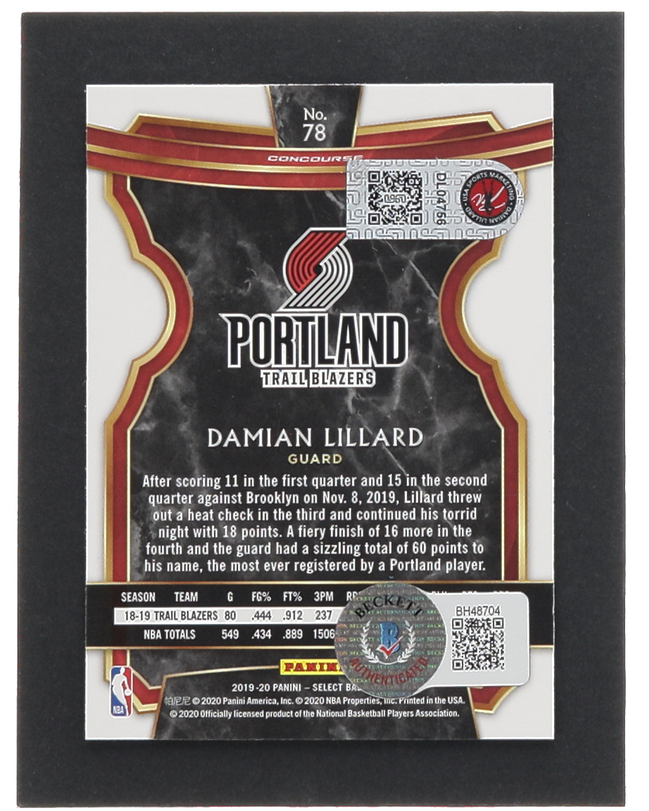 Damian Lillard Signed 2019-20 Select #78 (Beckett)
