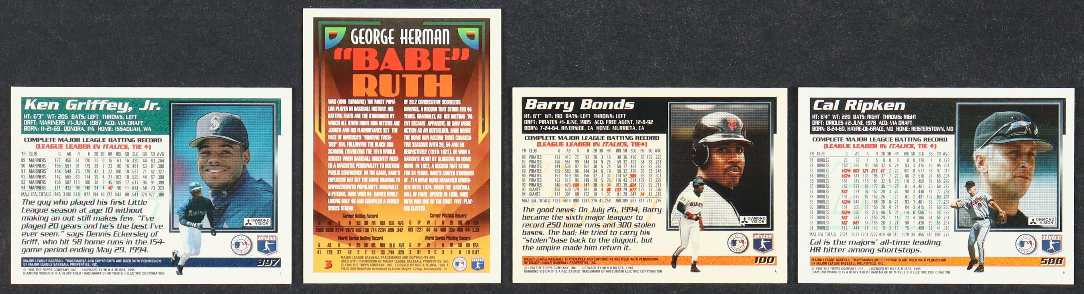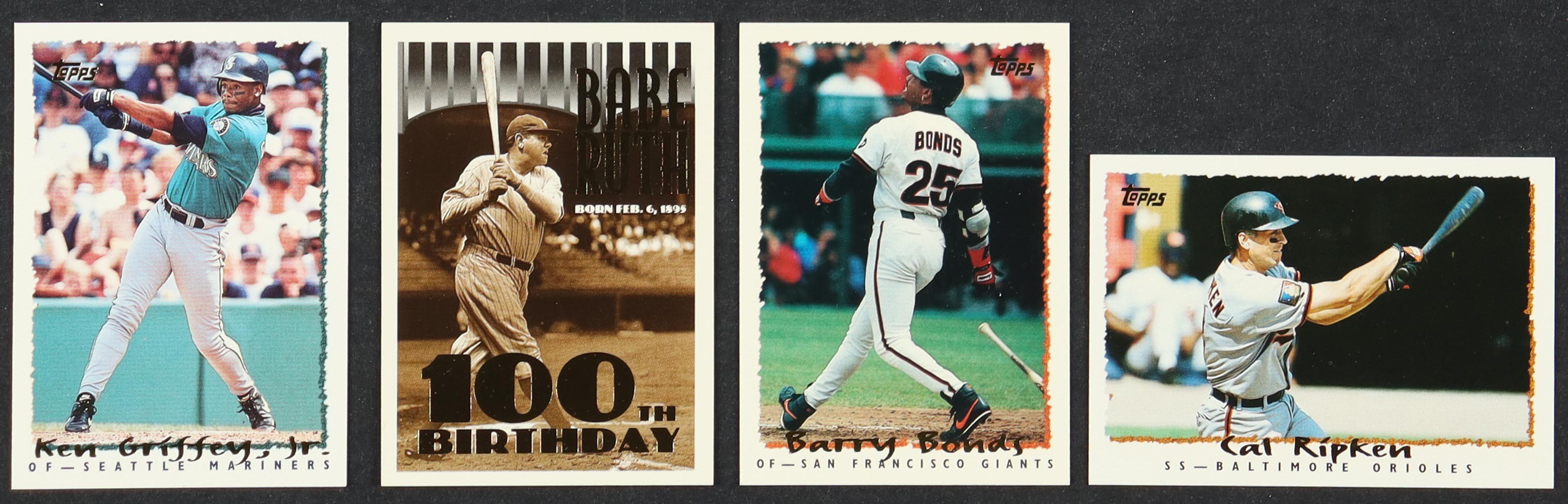 1995 Topps Baseball Complete Factory Set of (677) Cards with Ken Griffey Jr. #397, Cal Ripken #588, Babe Ruth #3 100th B-Day, Barry Bonds #100
