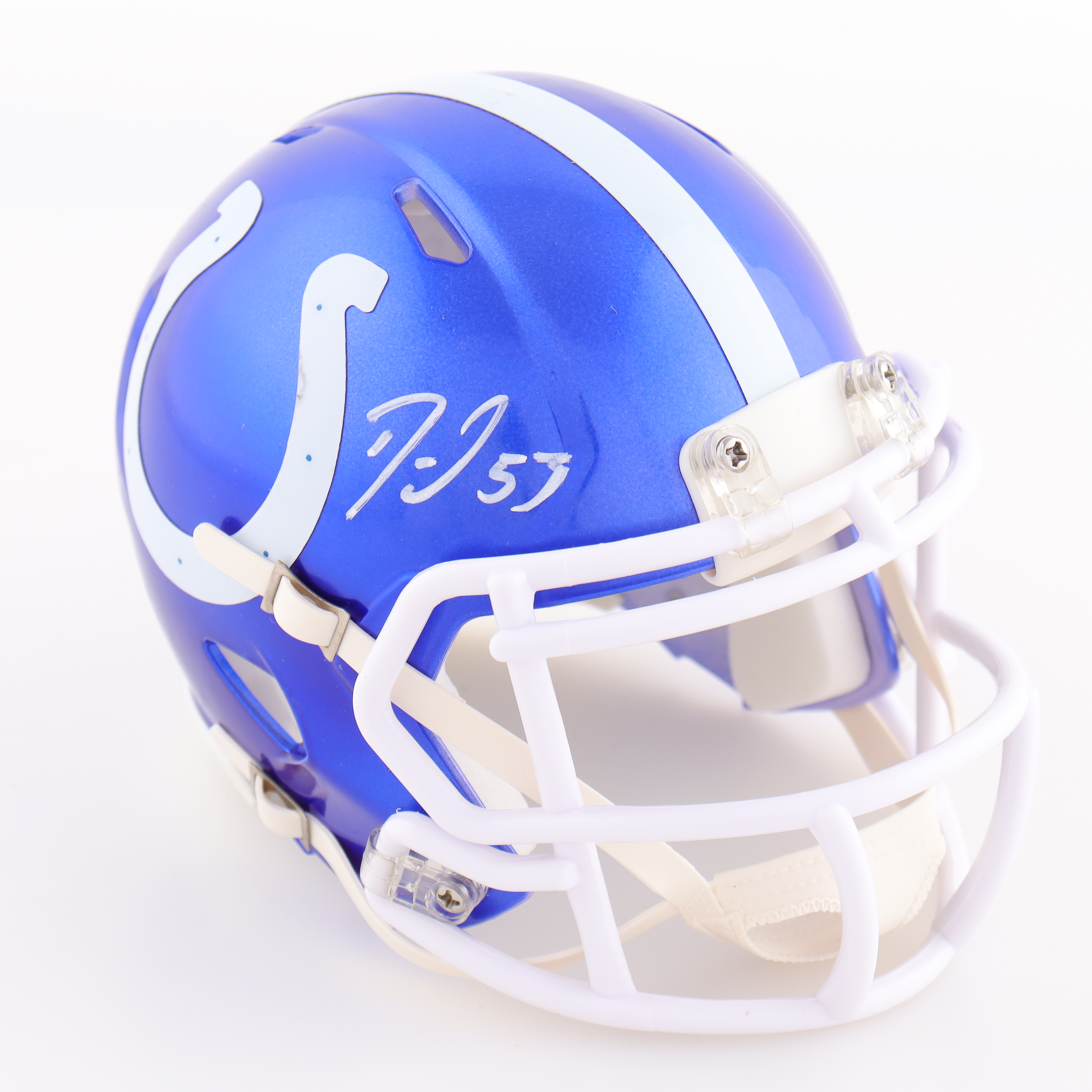 Riddell Indianapolis Colts Flash Alternate Speed mini helmet. Hand-signed by Darius Leonard.