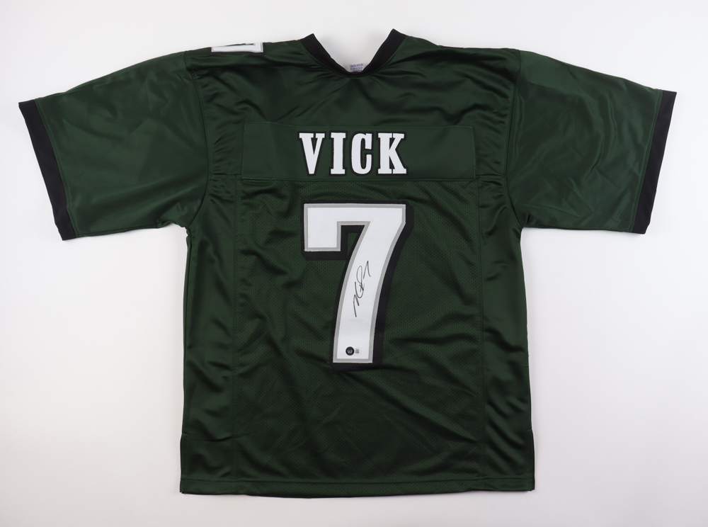 Custom jersey with everything sewn own, size XL. Hand-signed by Michael Vick.