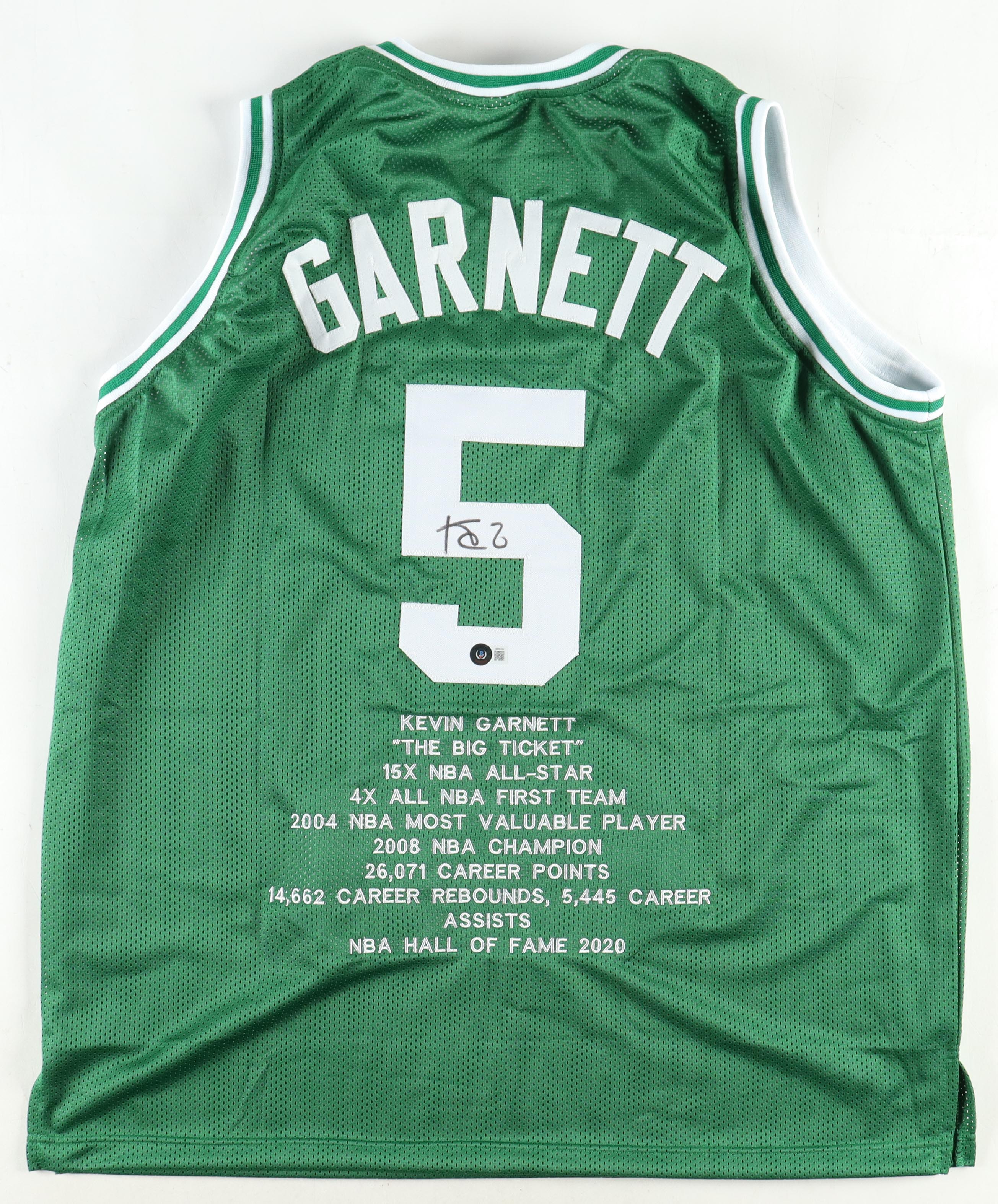 Kevin Garnett Signed Career Highlight Stat Jersey (Beckett)