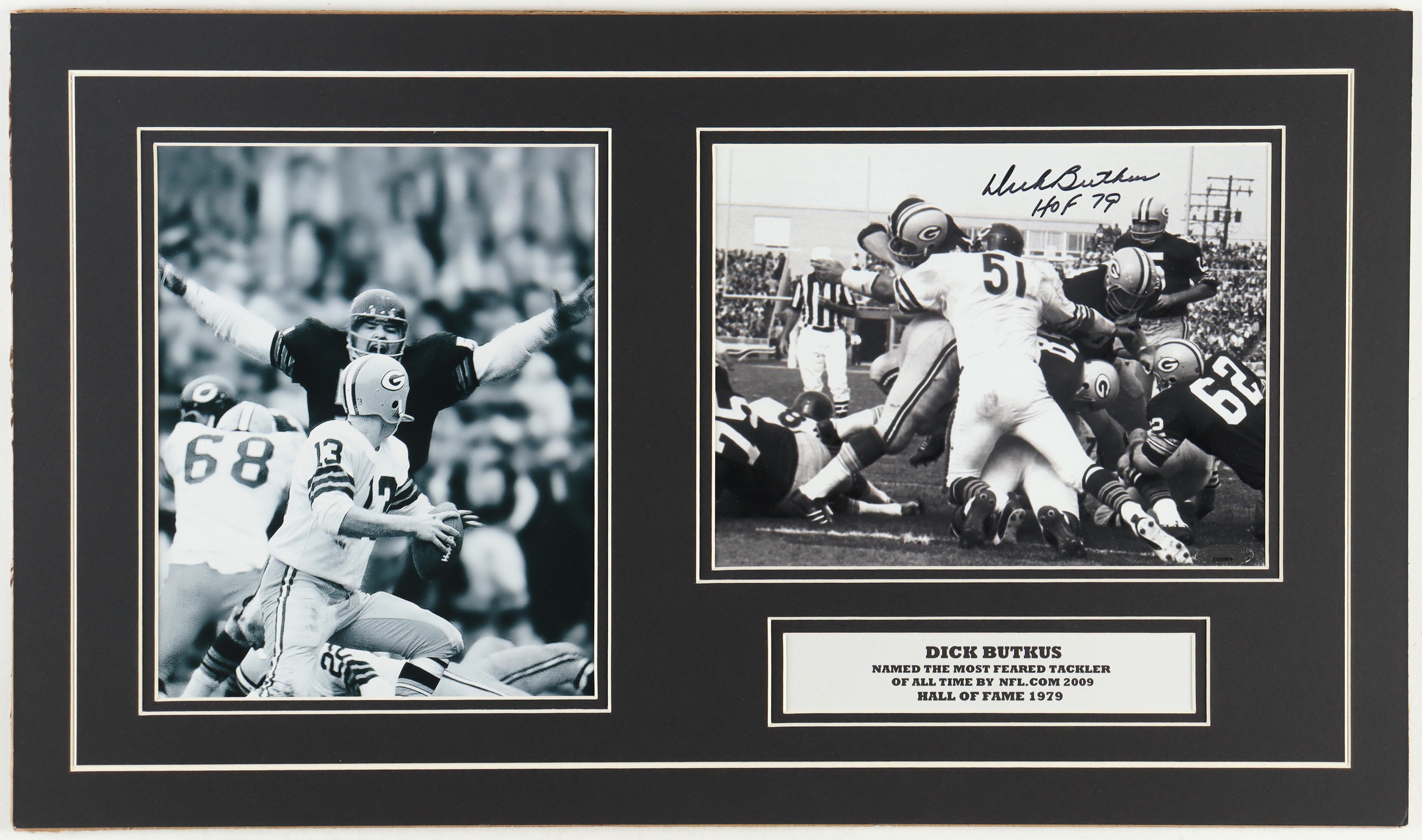 Dick Butkus Signed Bears 14x24 Custom Matted Photo Display Inscribed "HOF 79" (TriStar)