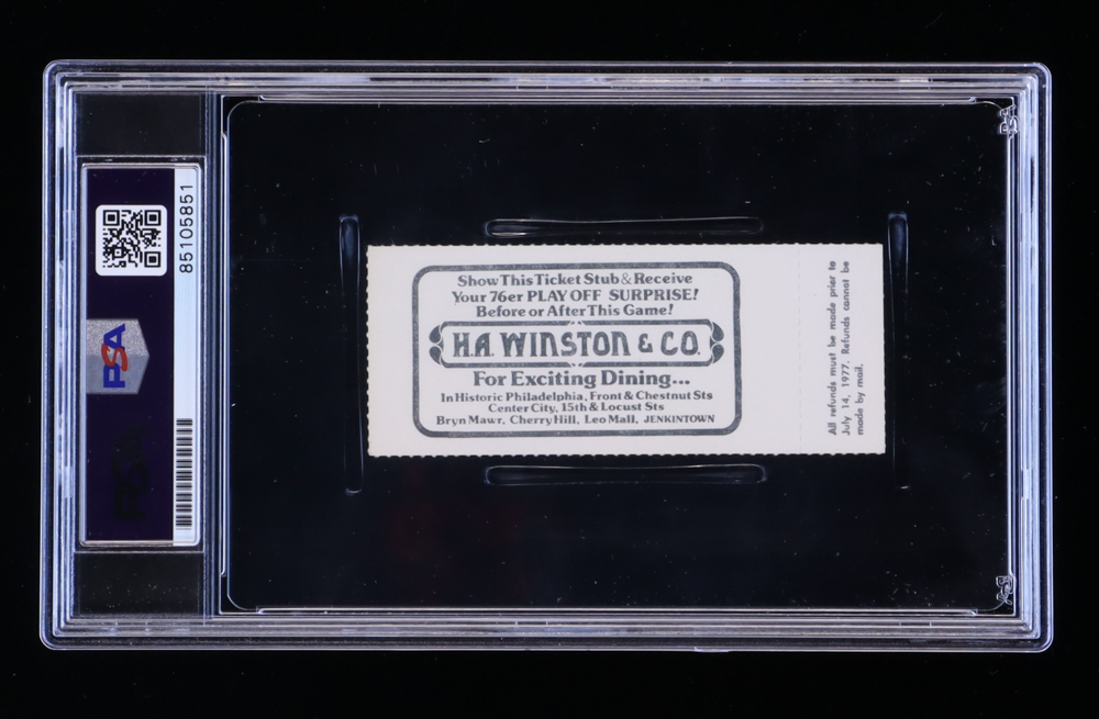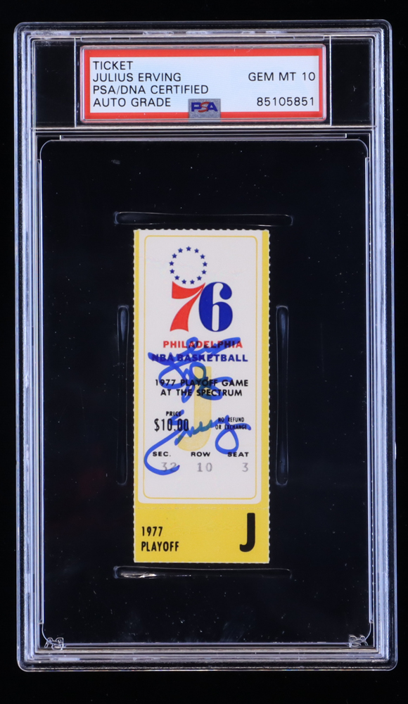 Julius "Dr. J" Erving Signed 1977 NBA Playoffs Full Ticket (PSA | Auto Grade 10)