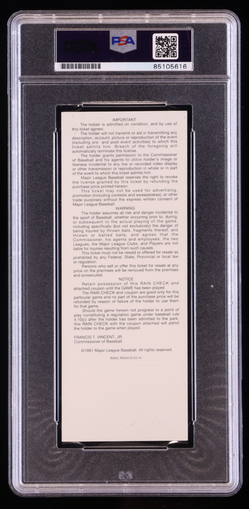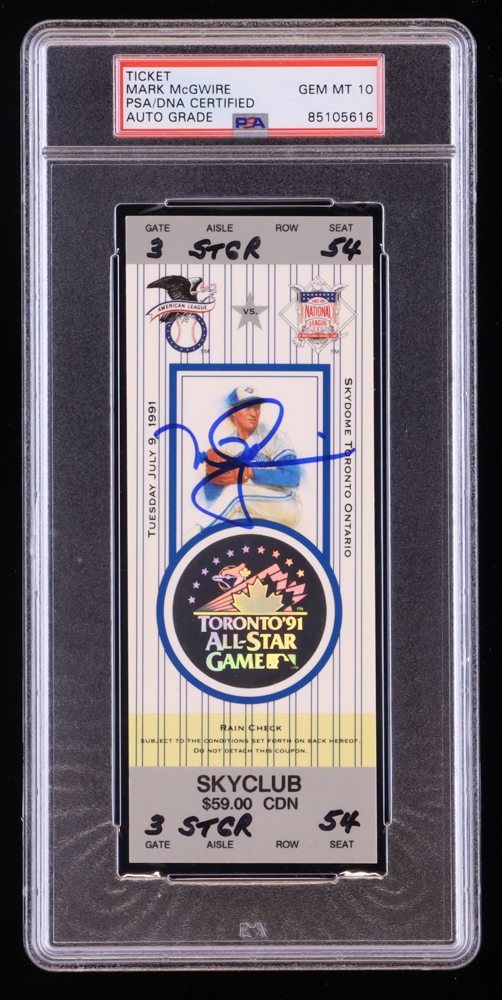 Mark McGwire Signed 1991 All-Star Game Ticket (PSA | Auto Grade 10)