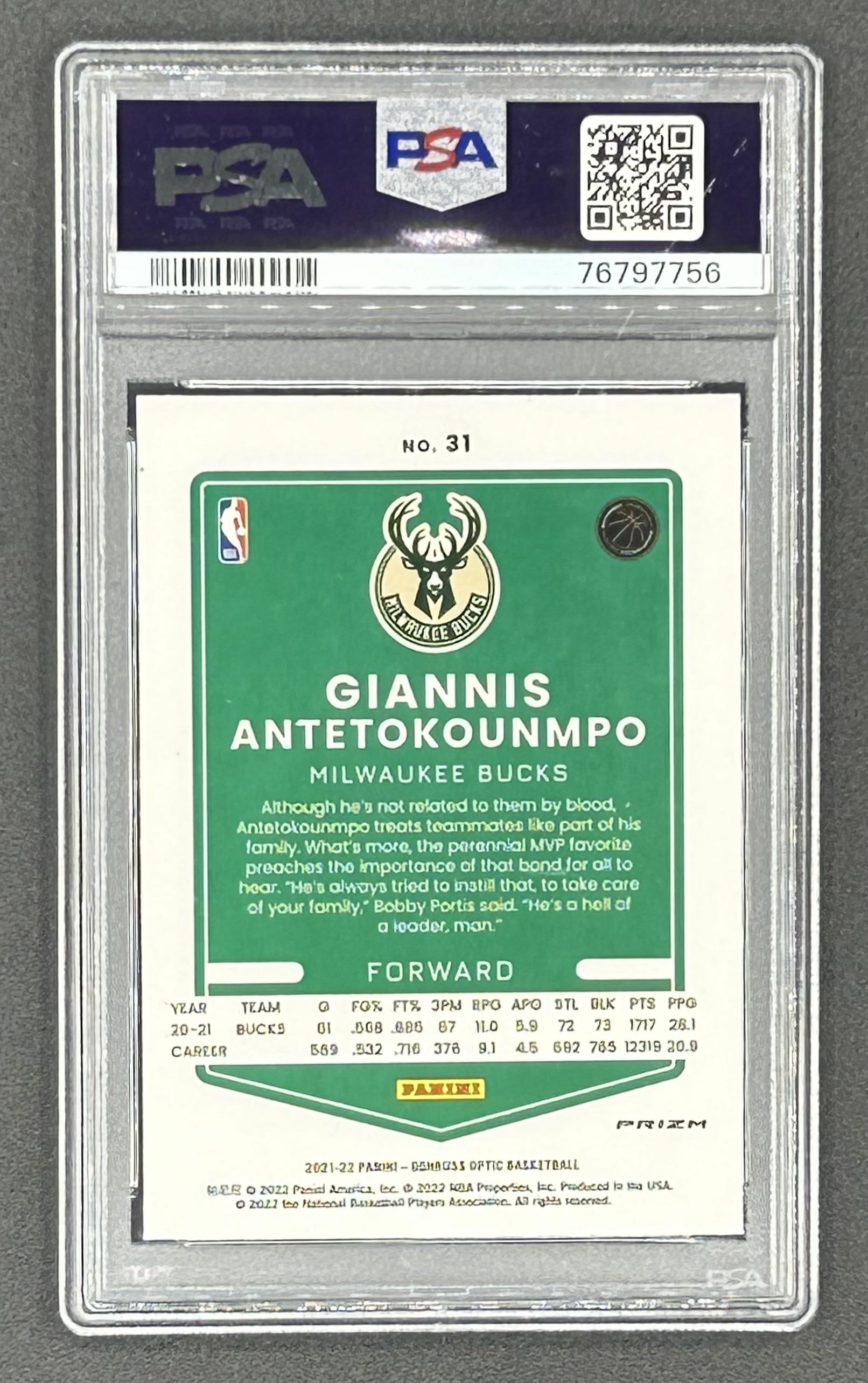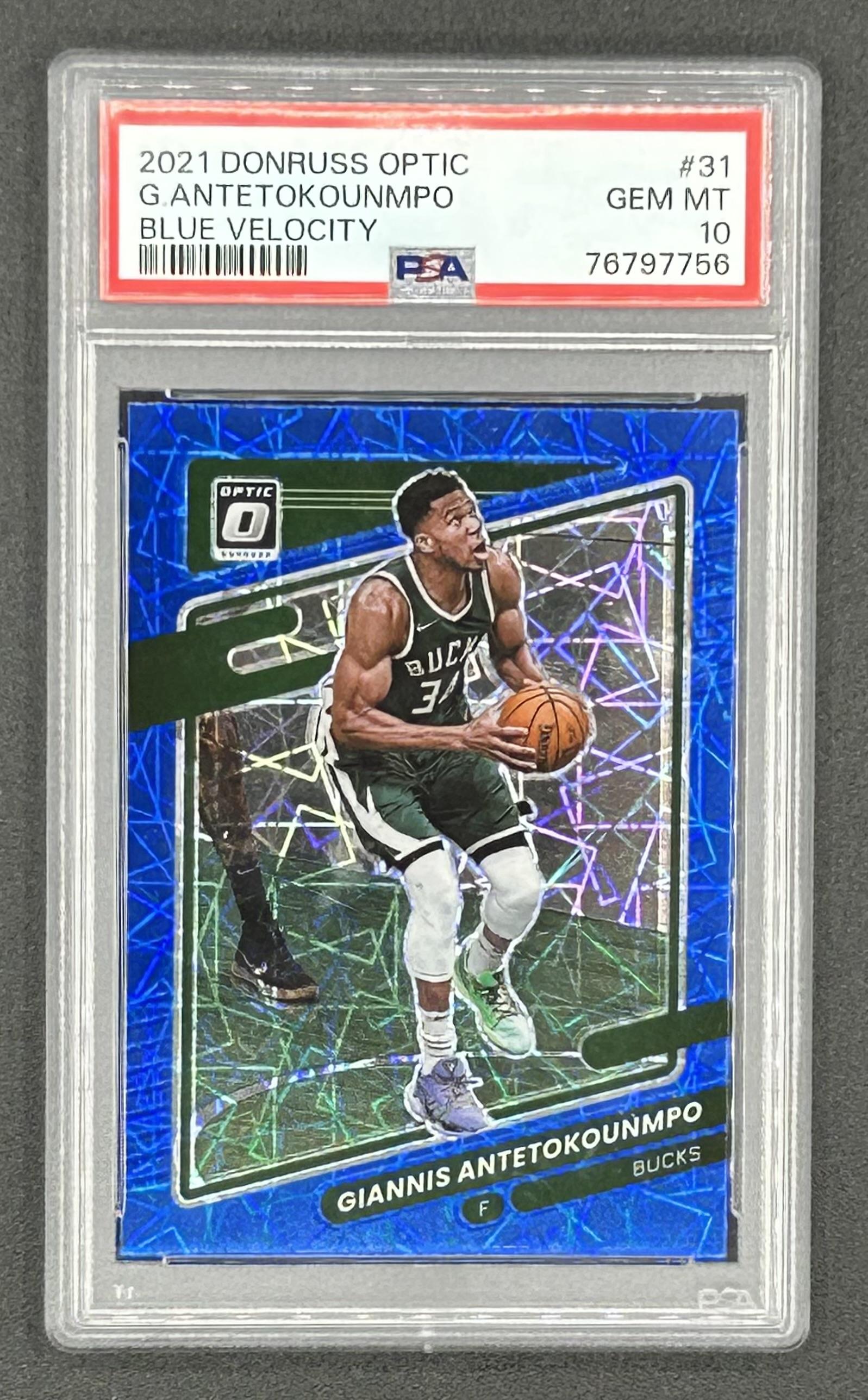 Giannis Antetokounmpo 2021-22 Donruss Optic Blue Velocity #31 (PSA 10)