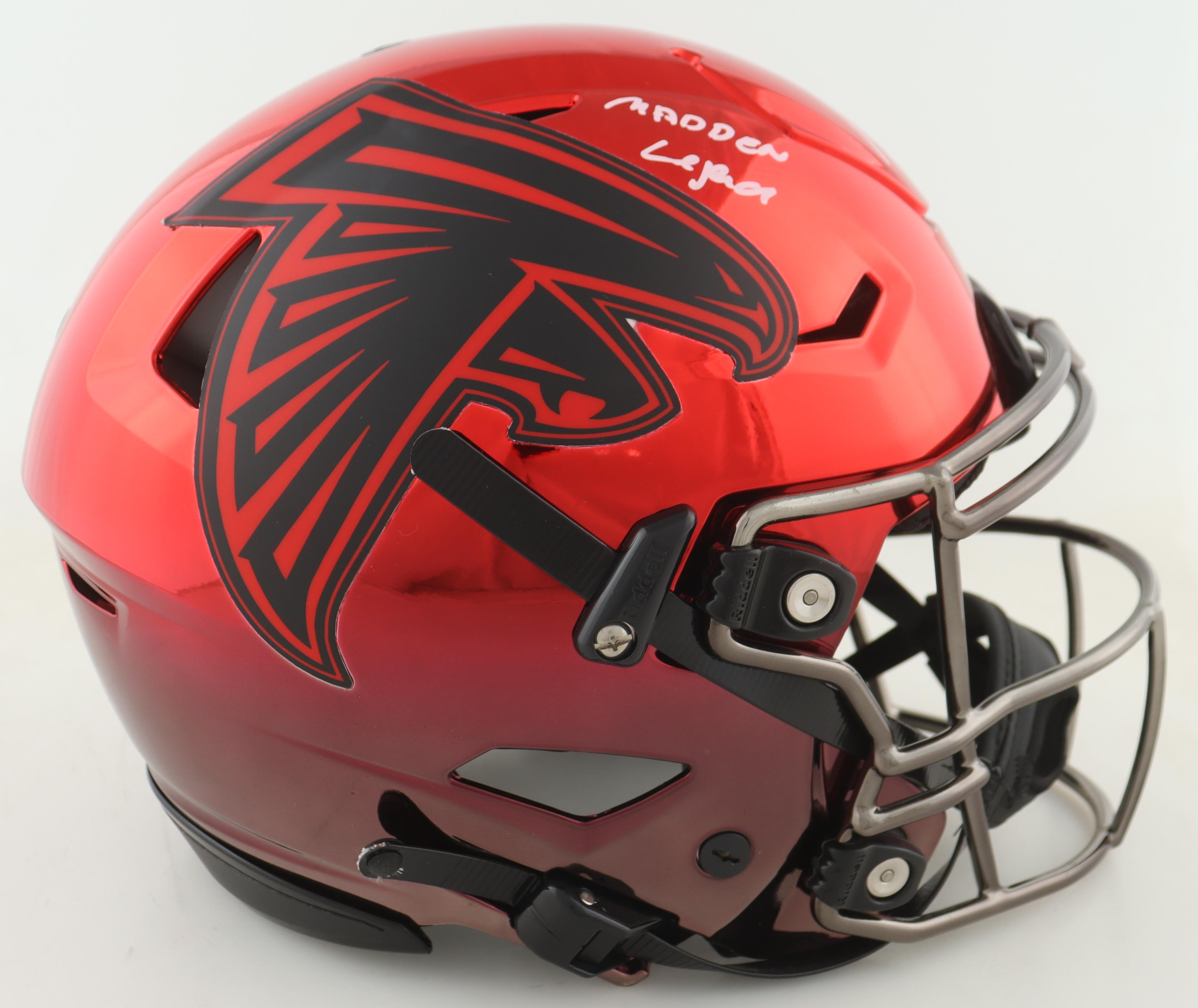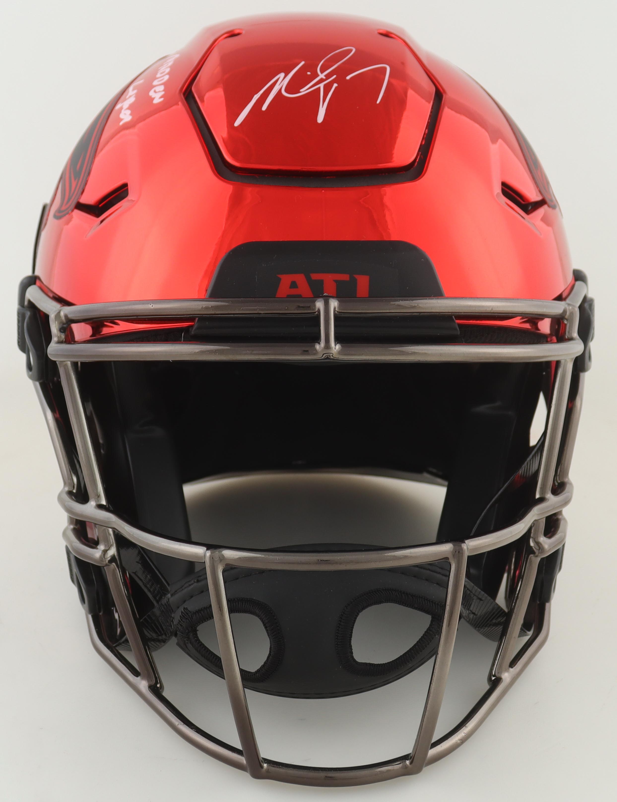 Riddell Atlanta Falcons full-size authentic on-field Chrome SpeedFlex helmet. Hand-signed and inscribed by Michael Vick.