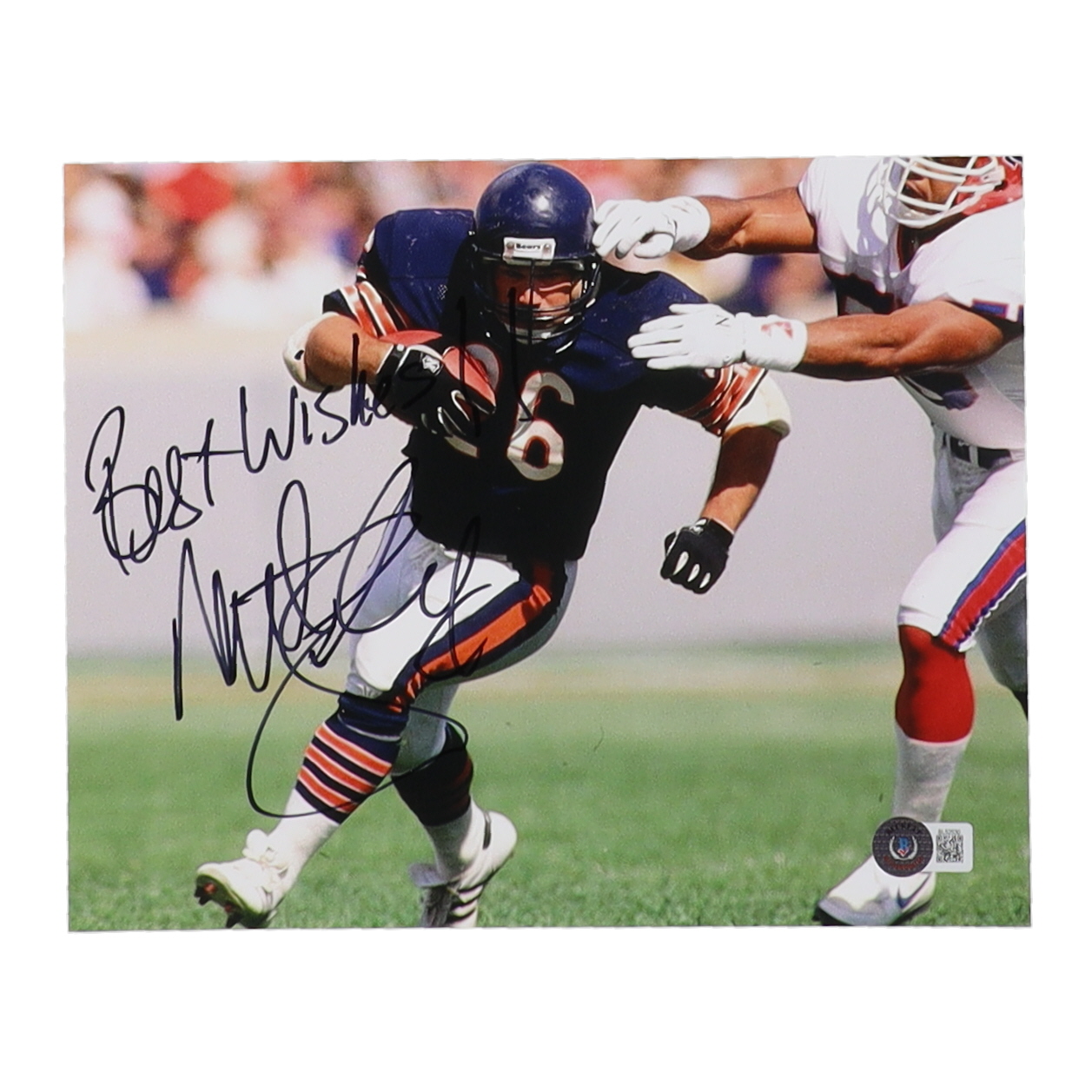 Photo measures 8" x 10" in size. Hand-signed and inscribed by Matt Suhey (Chicago Bears).