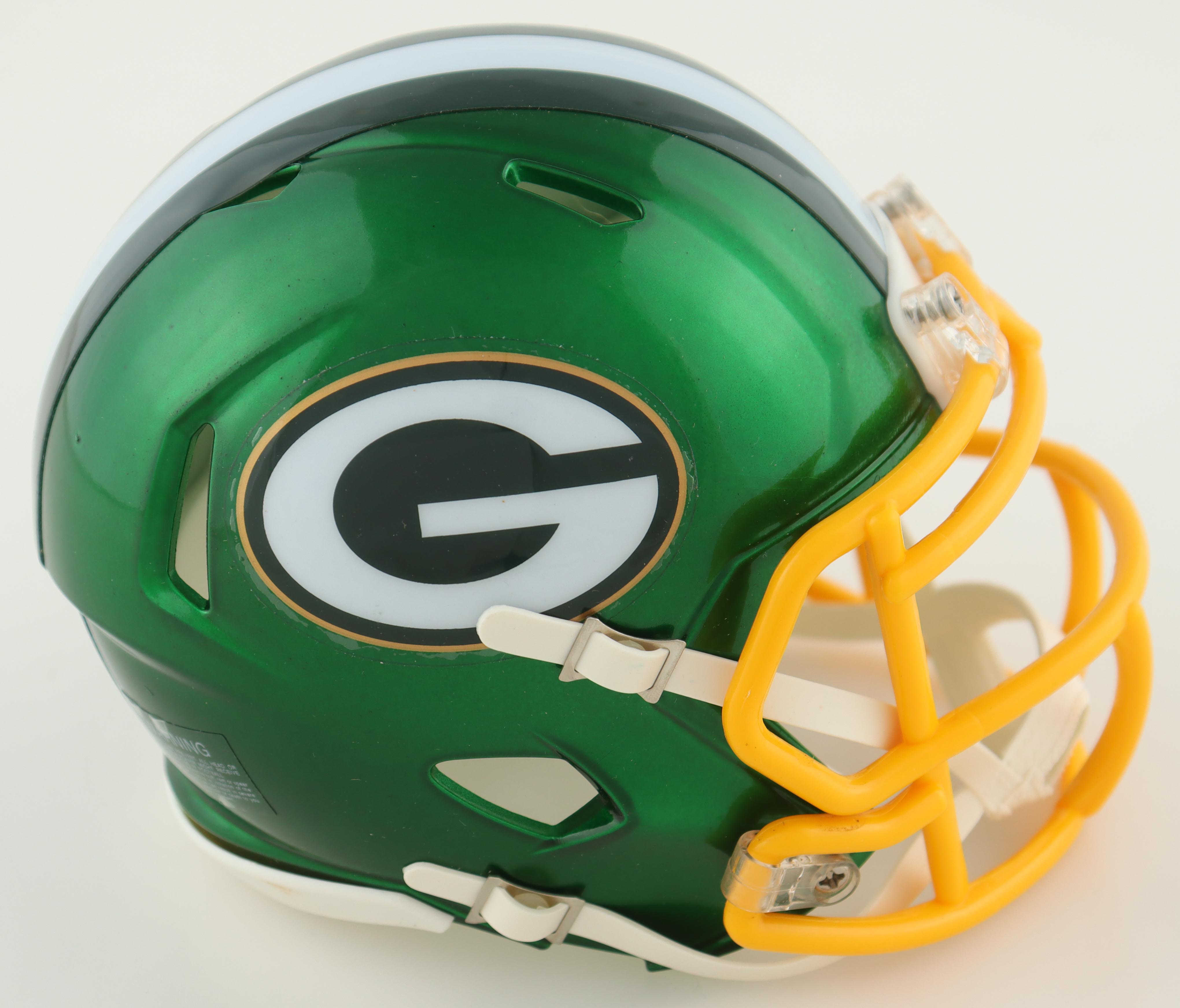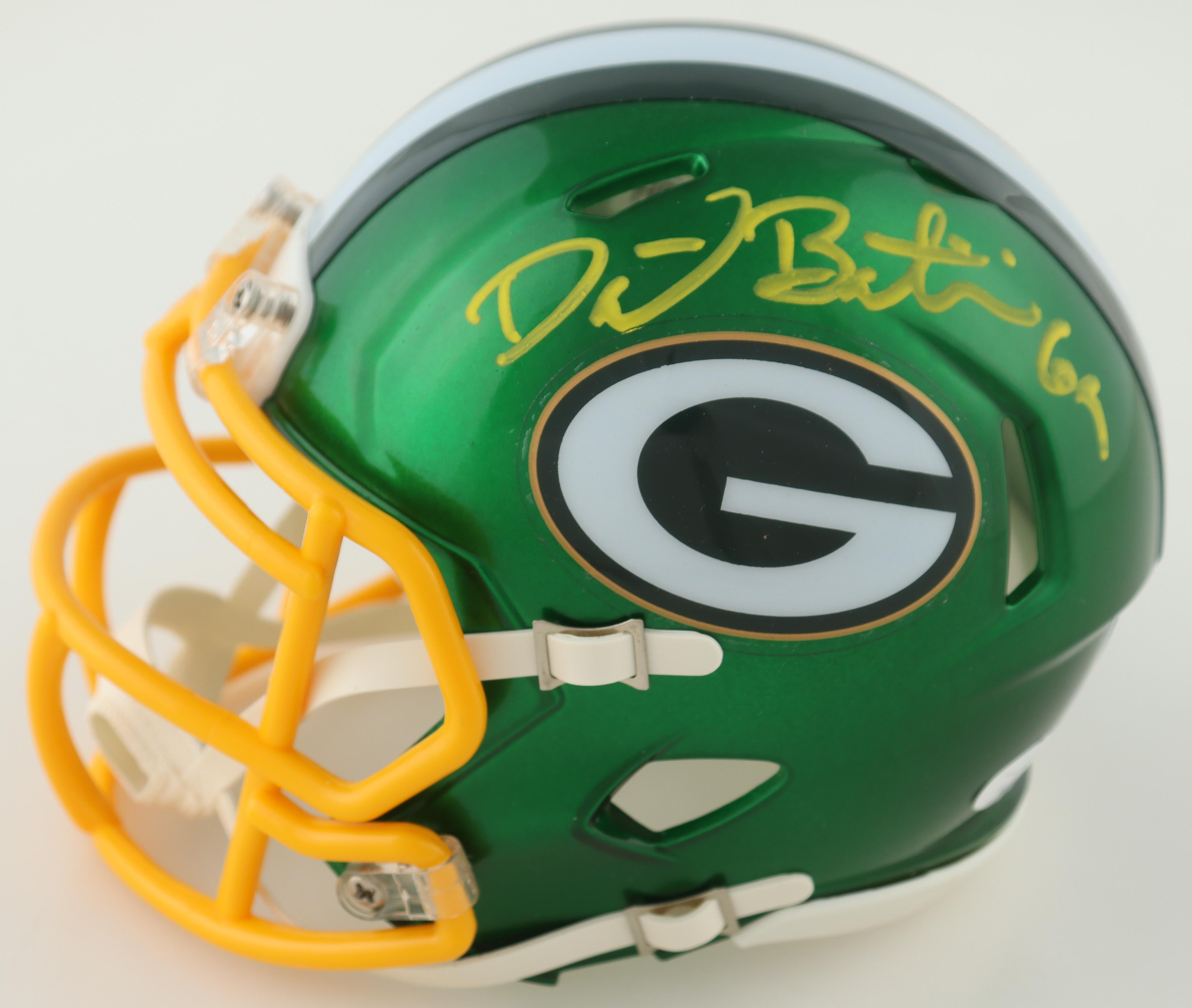 Riddell Green Bay Packers Flash Alternate Speed mini helmet. Hand-signed by David Bakhtiari.