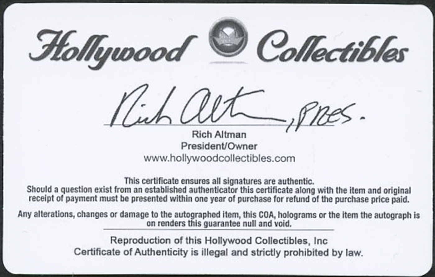 The autograph includes an official Rich Altman's Hollywood Collectibles hologram and matching COA for authenticity purposes.