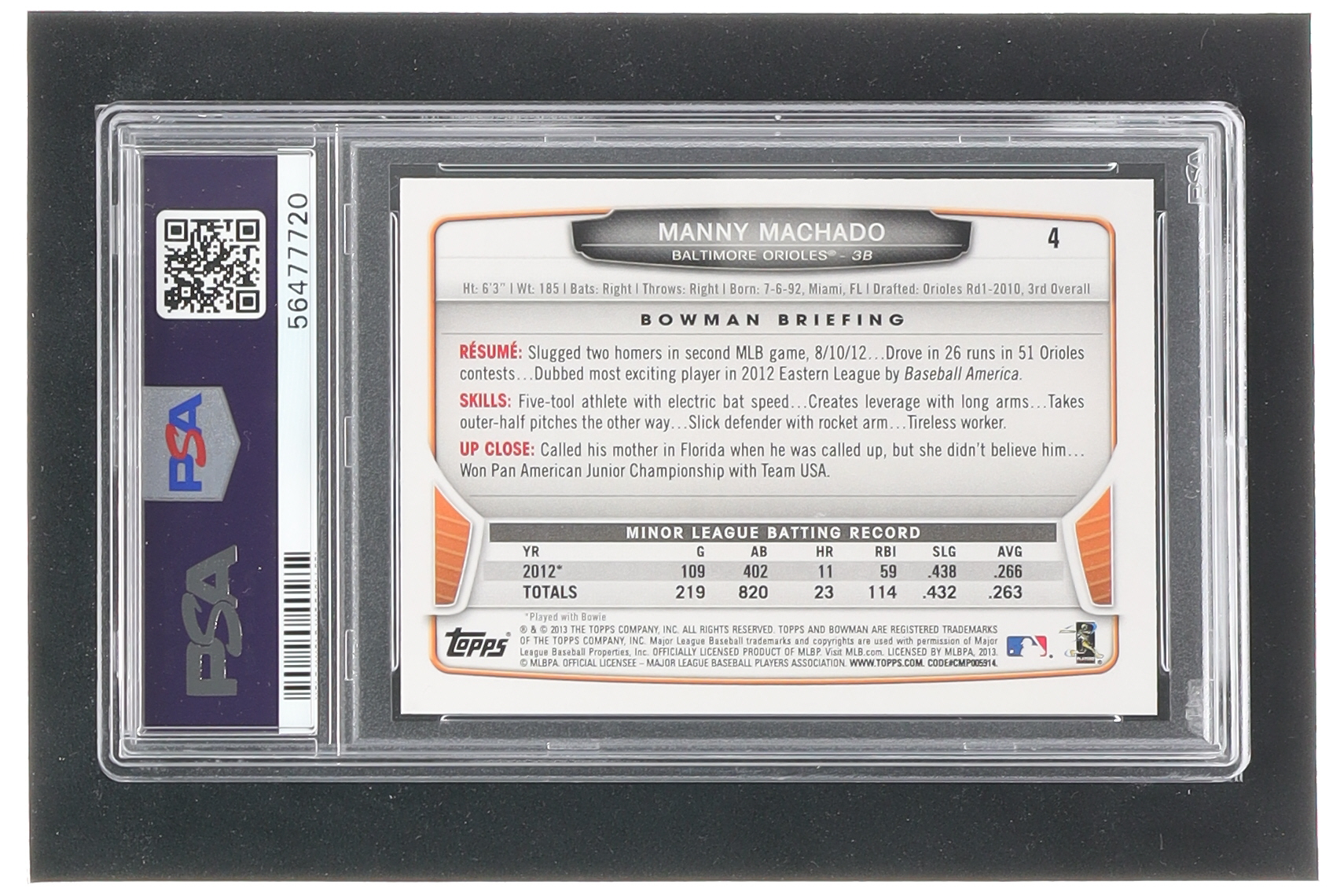 Manny Machado 2013 Bowman Draft #4 RC (PSA 10)