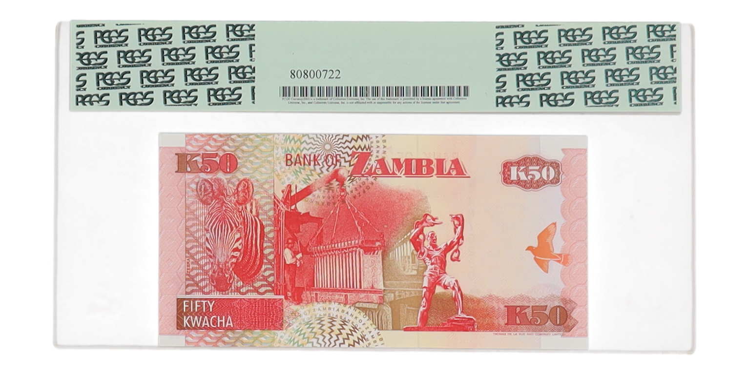 1992 Zambia, Bank of Zambia - 50 Kwacha (PCGS SUPERB GEM NEW 67PPQ)
