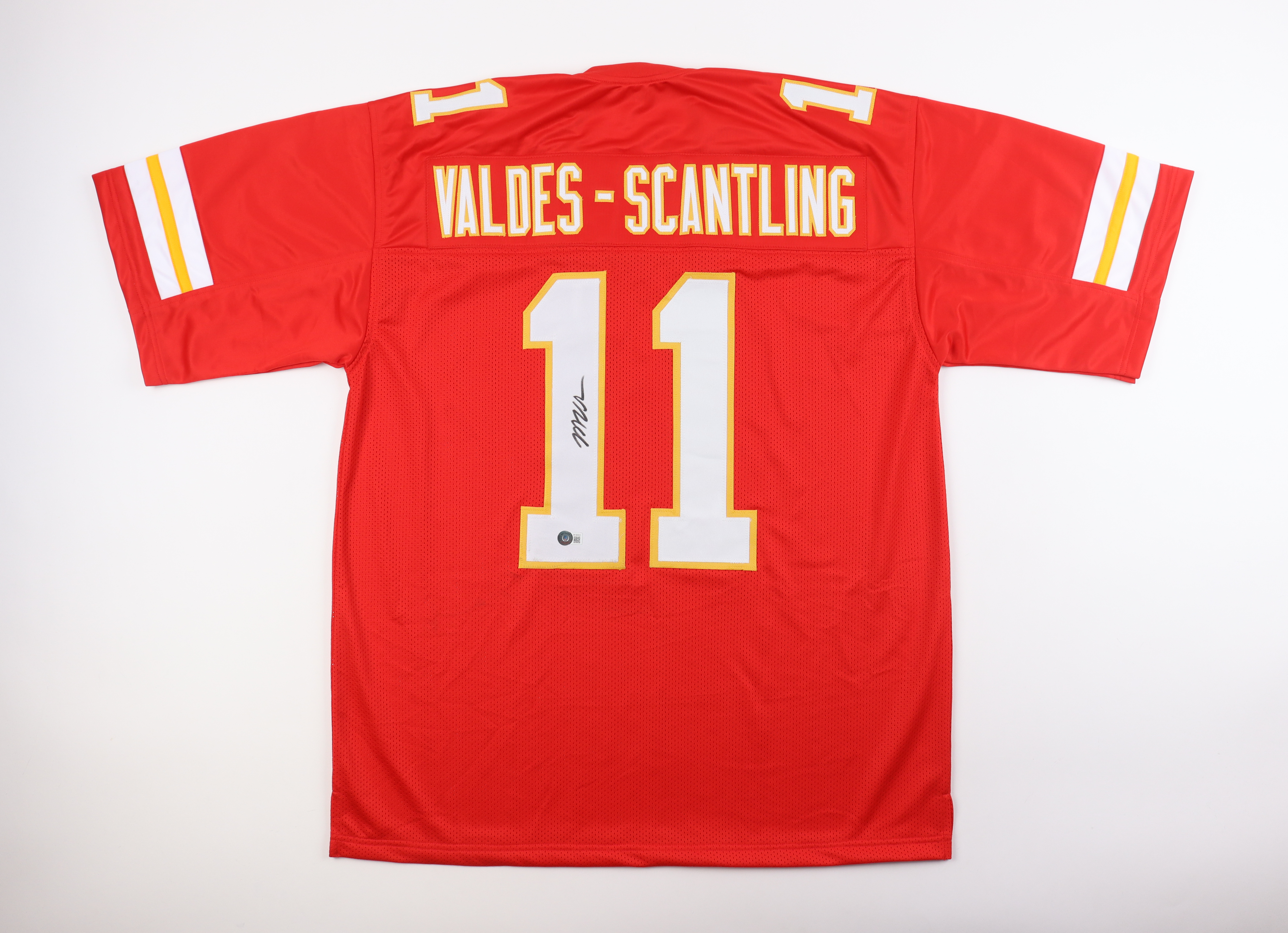 Custom jersey. Everything is sewn on, size XL. Hand-signed by Marquez Valdes-Scantling.