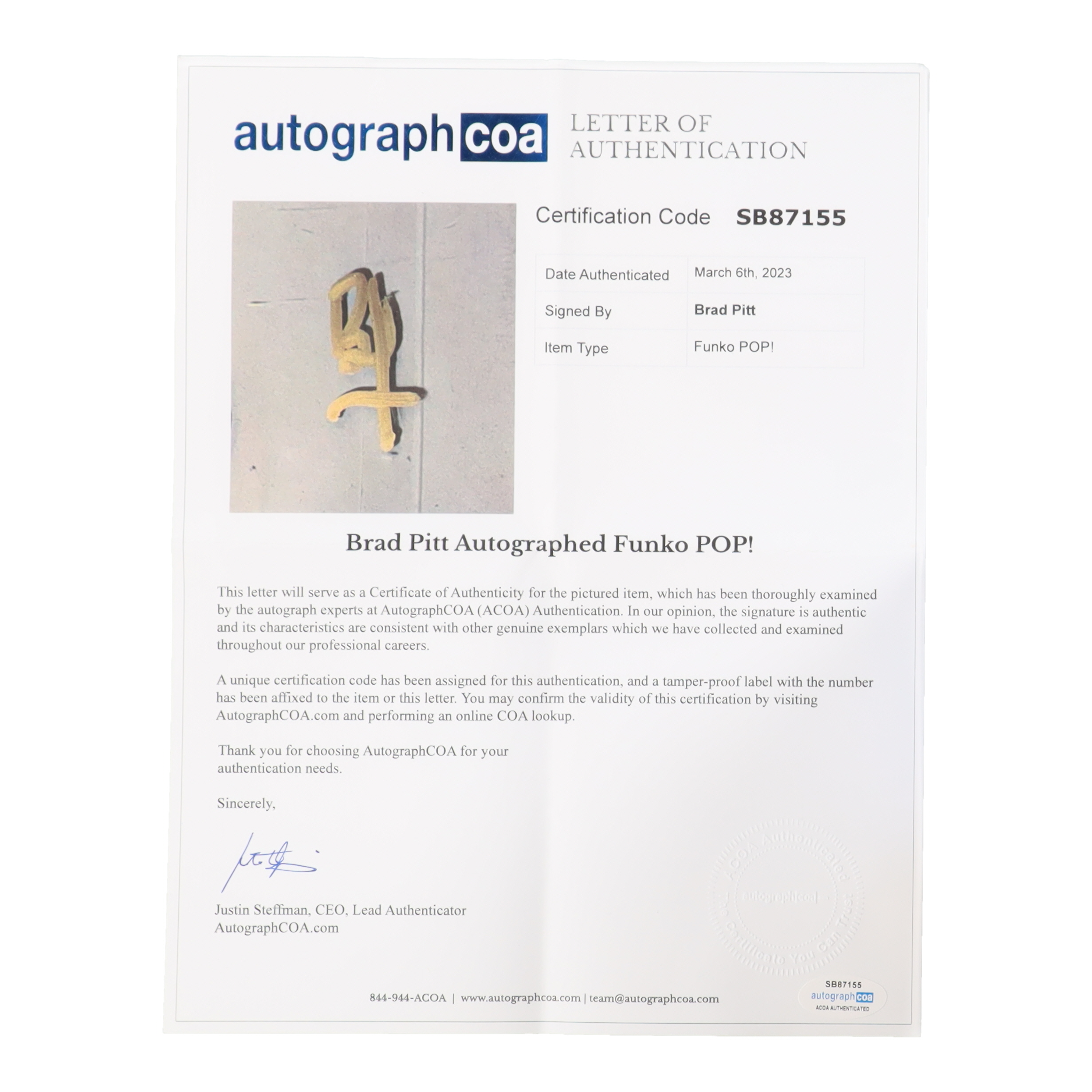 Funko Pop! Vinyl Figure measures approximately 4" tall and has been hand-signed on the packaging by Brad Pitt. Please note, item has been window swapped.