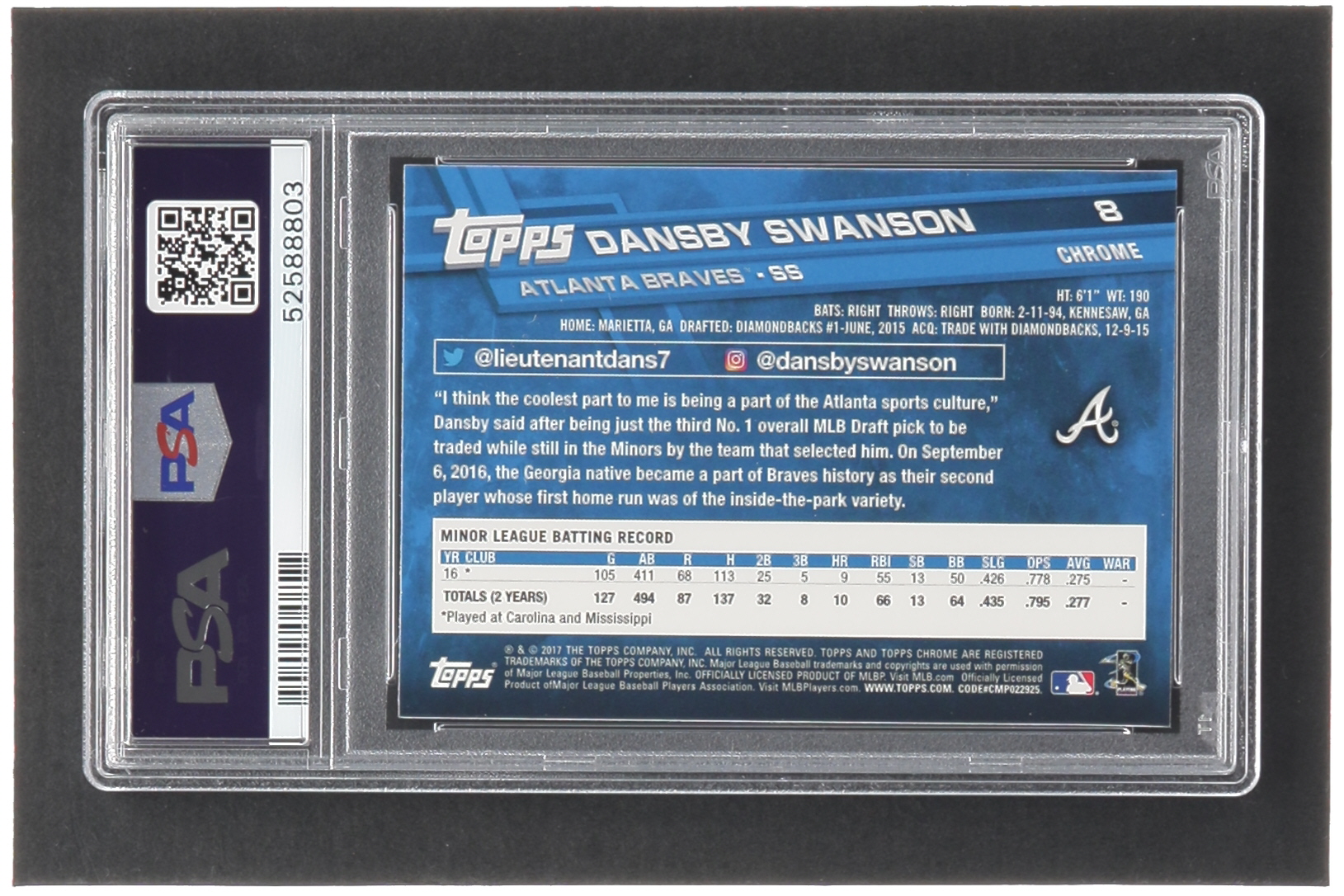 Dansby Swanson 2017 Topps Chrome #8A RC (PSA 10)