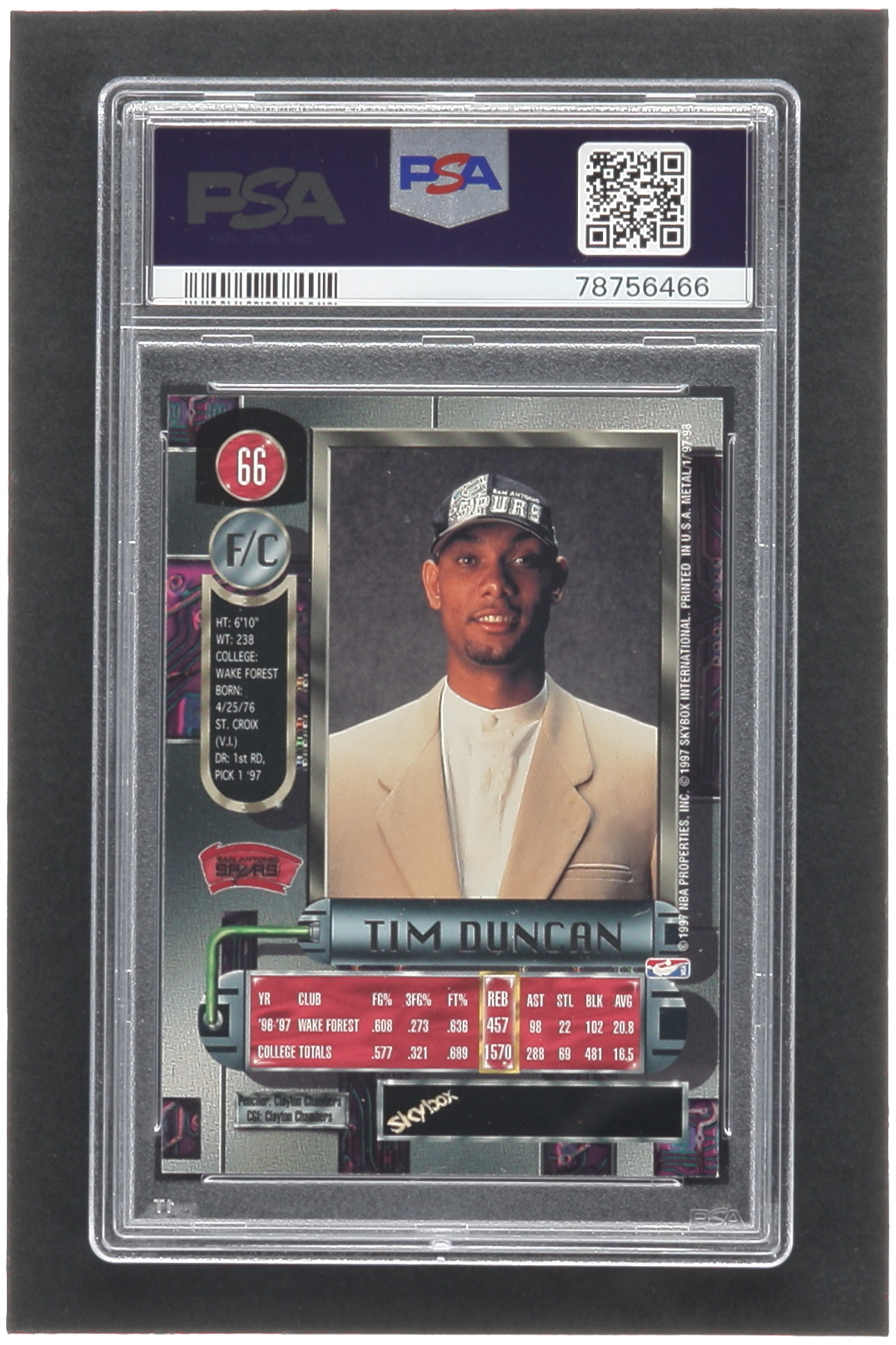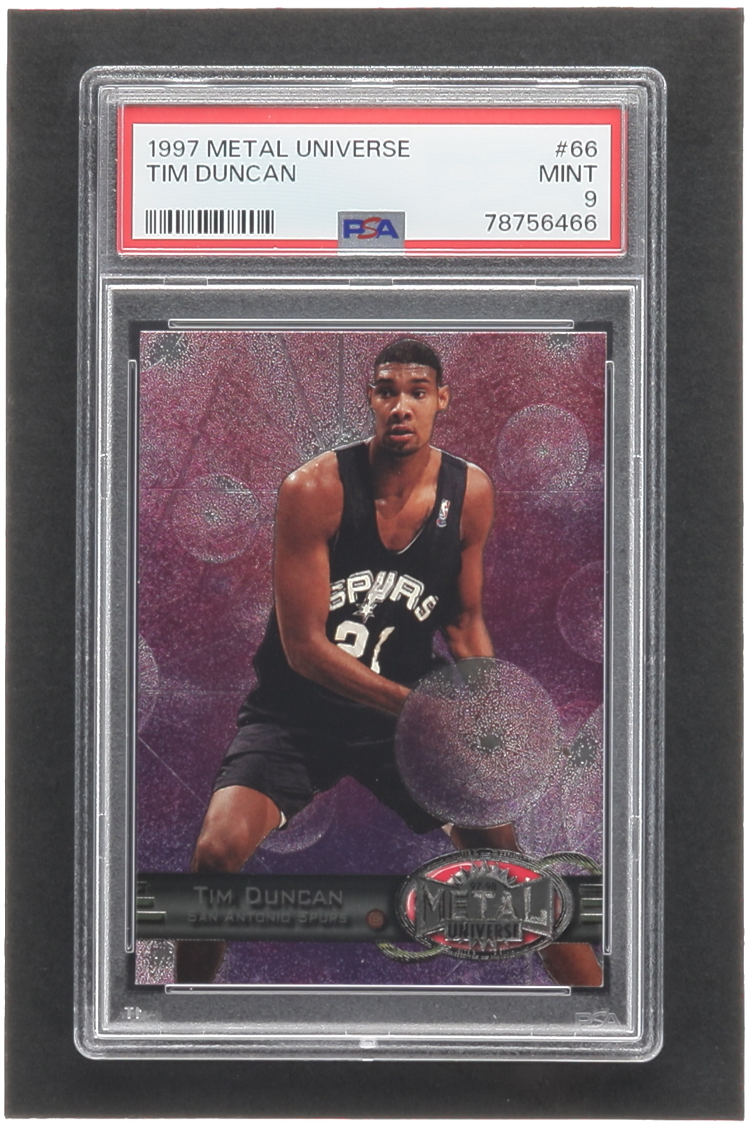 Tim Duncan 1997-98 Metal Universe #66 RC (PSA 9)