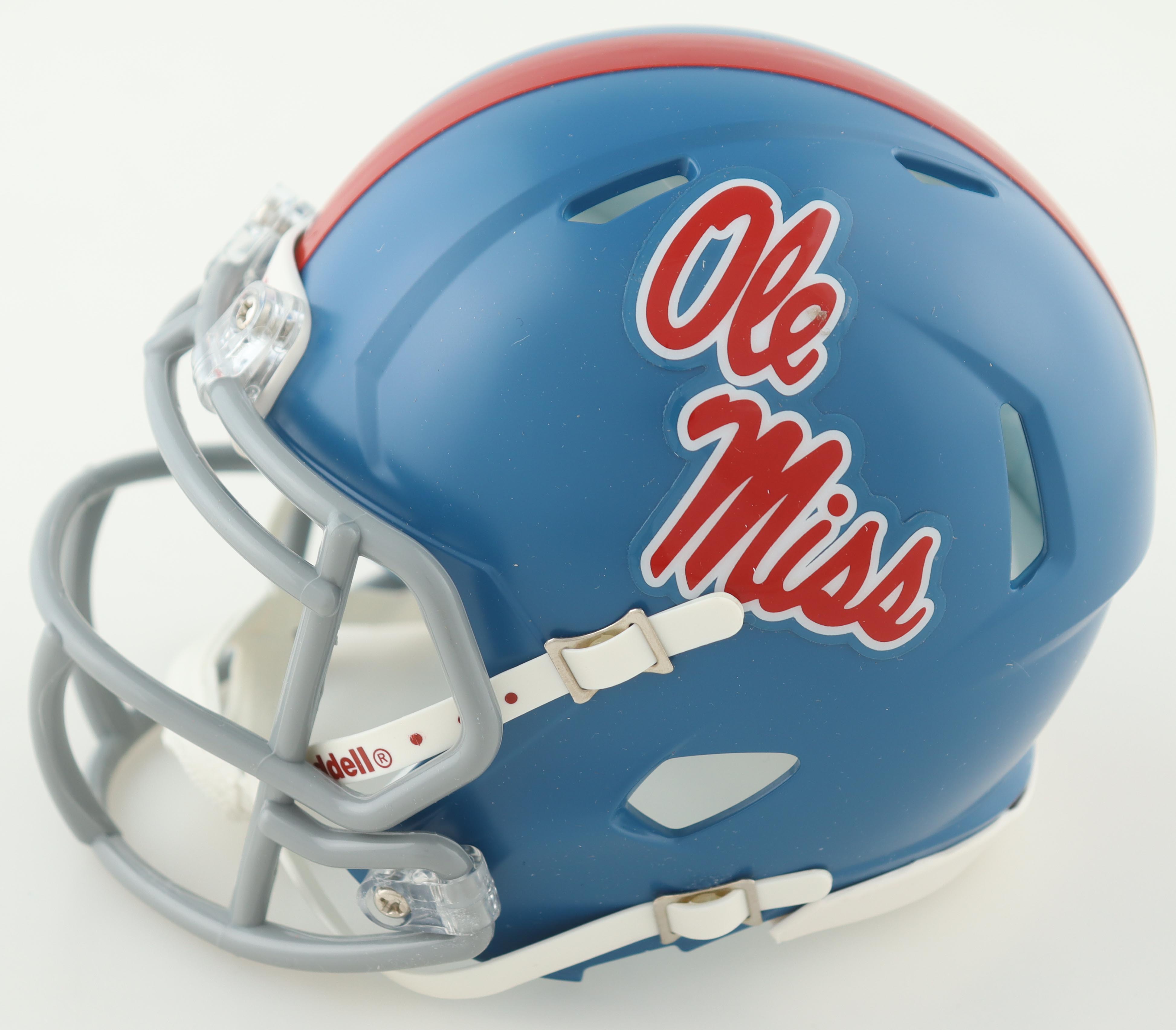 Riddell Jacksonville Ole Miss Rebels Speed mini helmet. Hand-signed by Evan Engram.