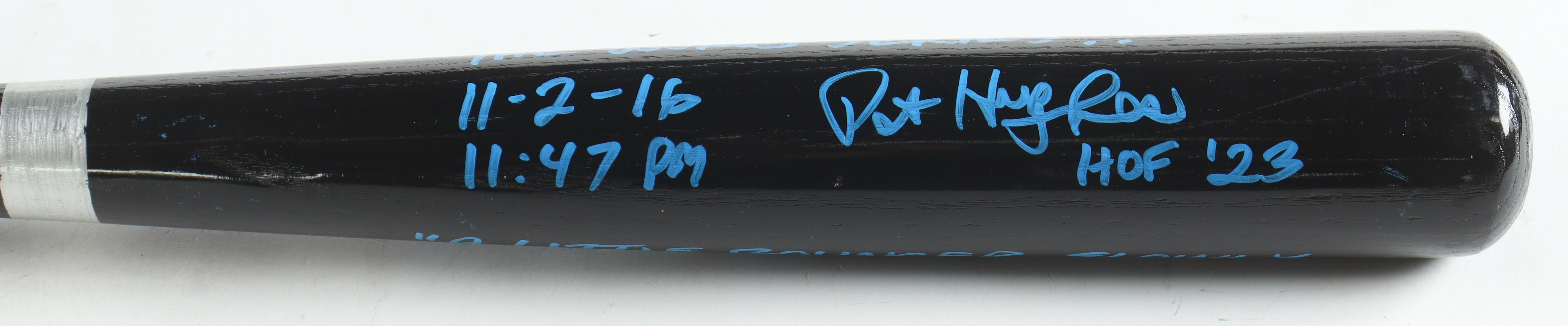 Rawlings Adirondack Big Stick Player Model Chicago Cubs 2016 World Series Last Out Call baseball bat. Hand-signed and inscribed by Pat Hughes (MLB Commentator).