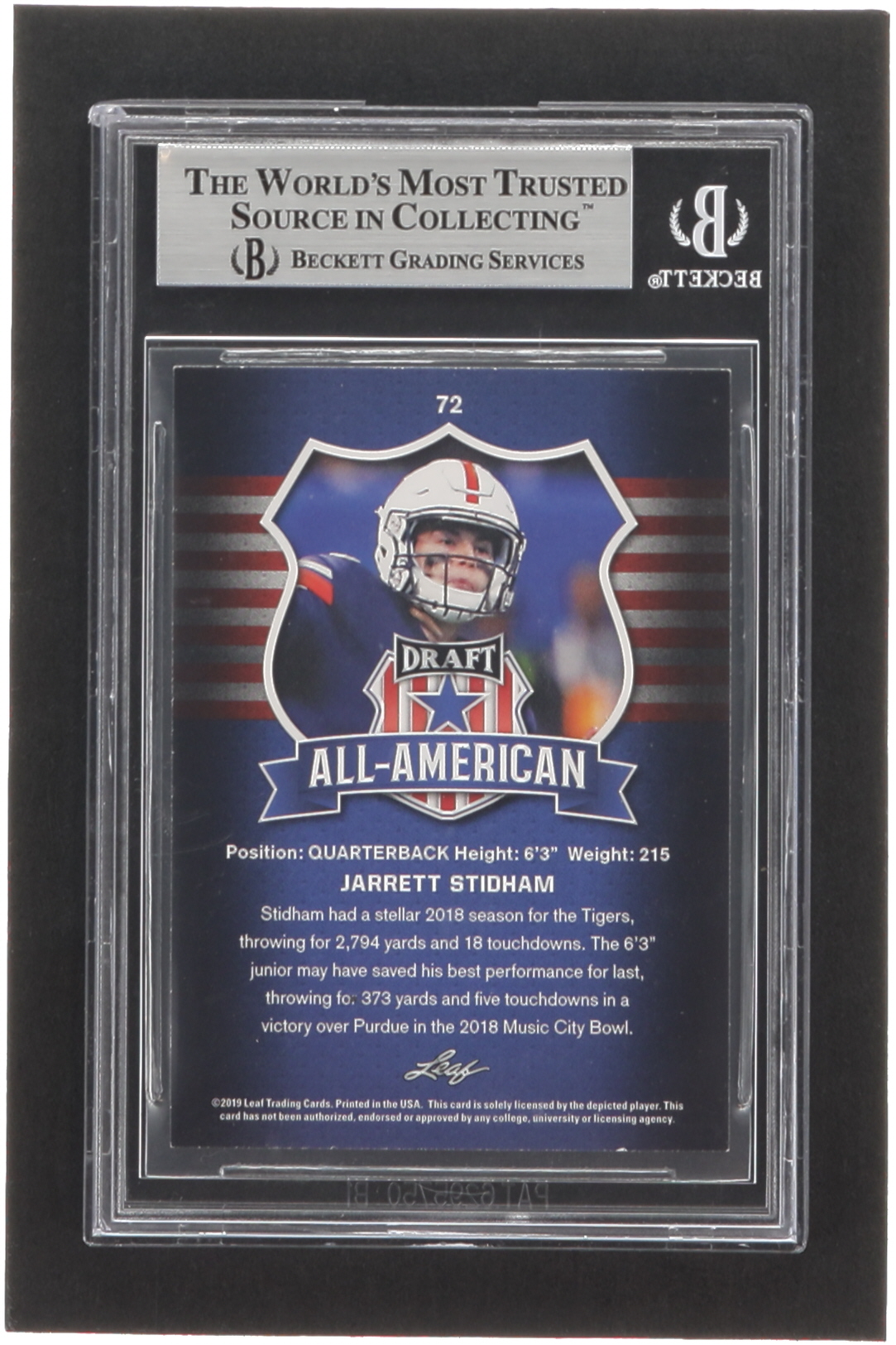 Jarrett Stidham Signed 2019 Leaf Draft #72 AA (BGS)