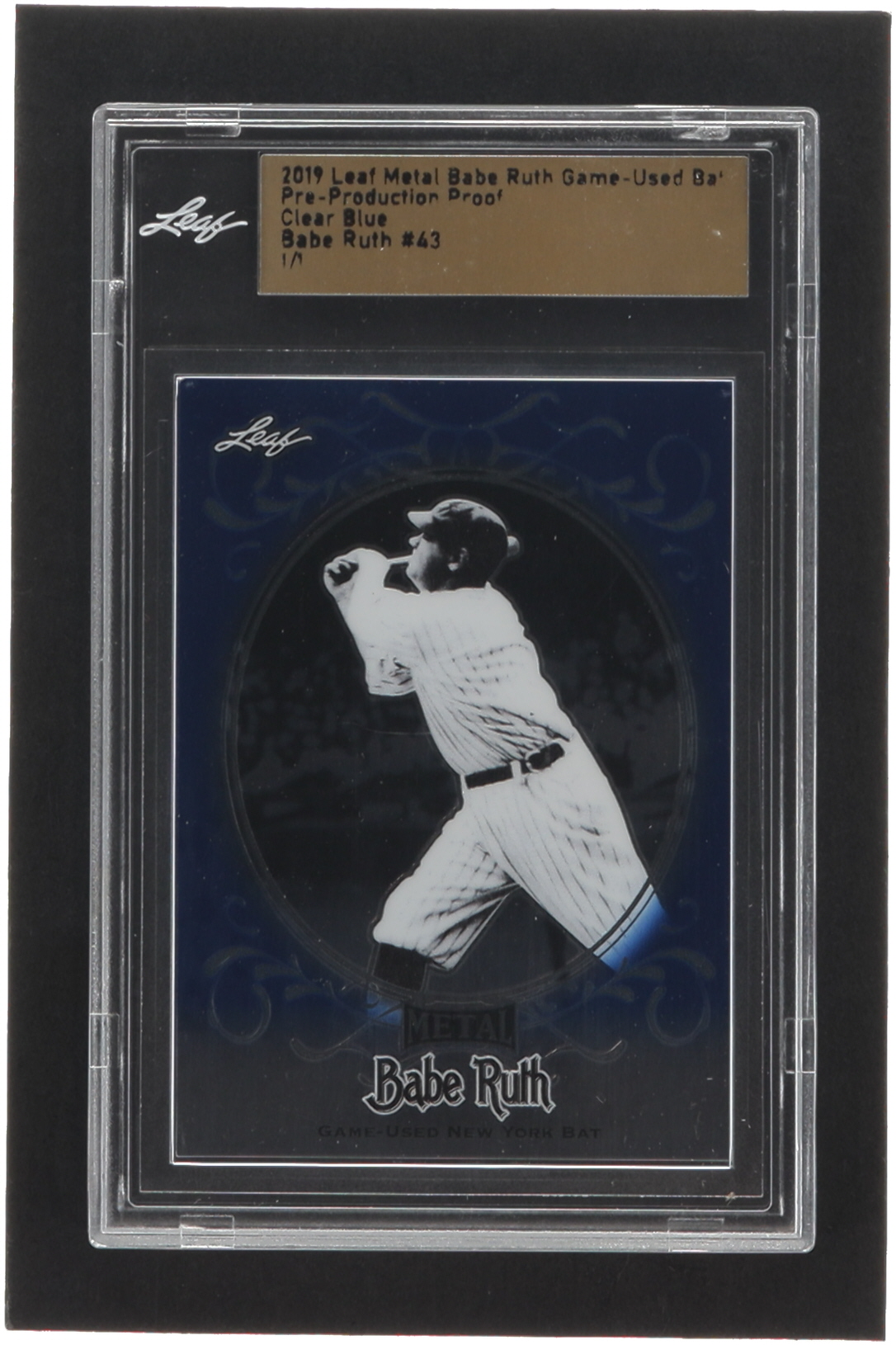 Babe Ruth 2019 Leaf Metal Babe Ruth Game-Used Bat Pre-Production Proof Clear Blue #43 #1/1 (Leaf)
