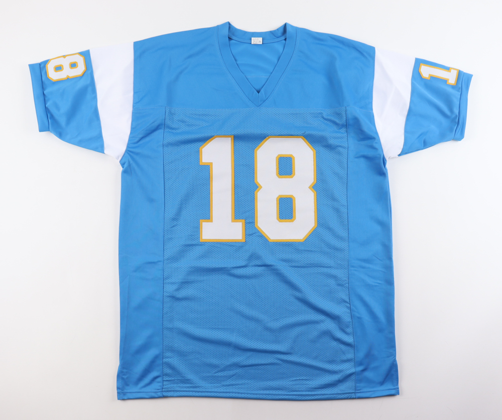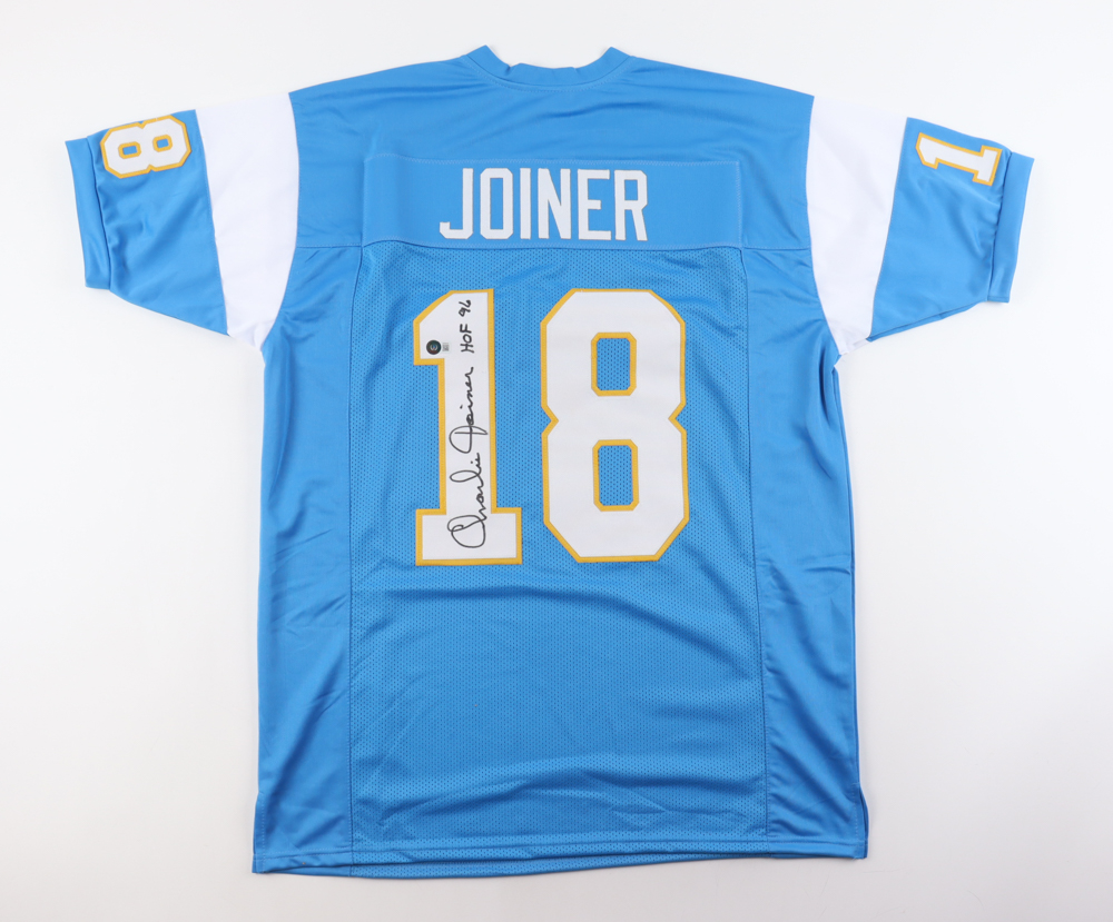 Custom jersey with everything sewn on, size XL. Has been hand-signed and inscribed by Charlie Joiner (HOF)