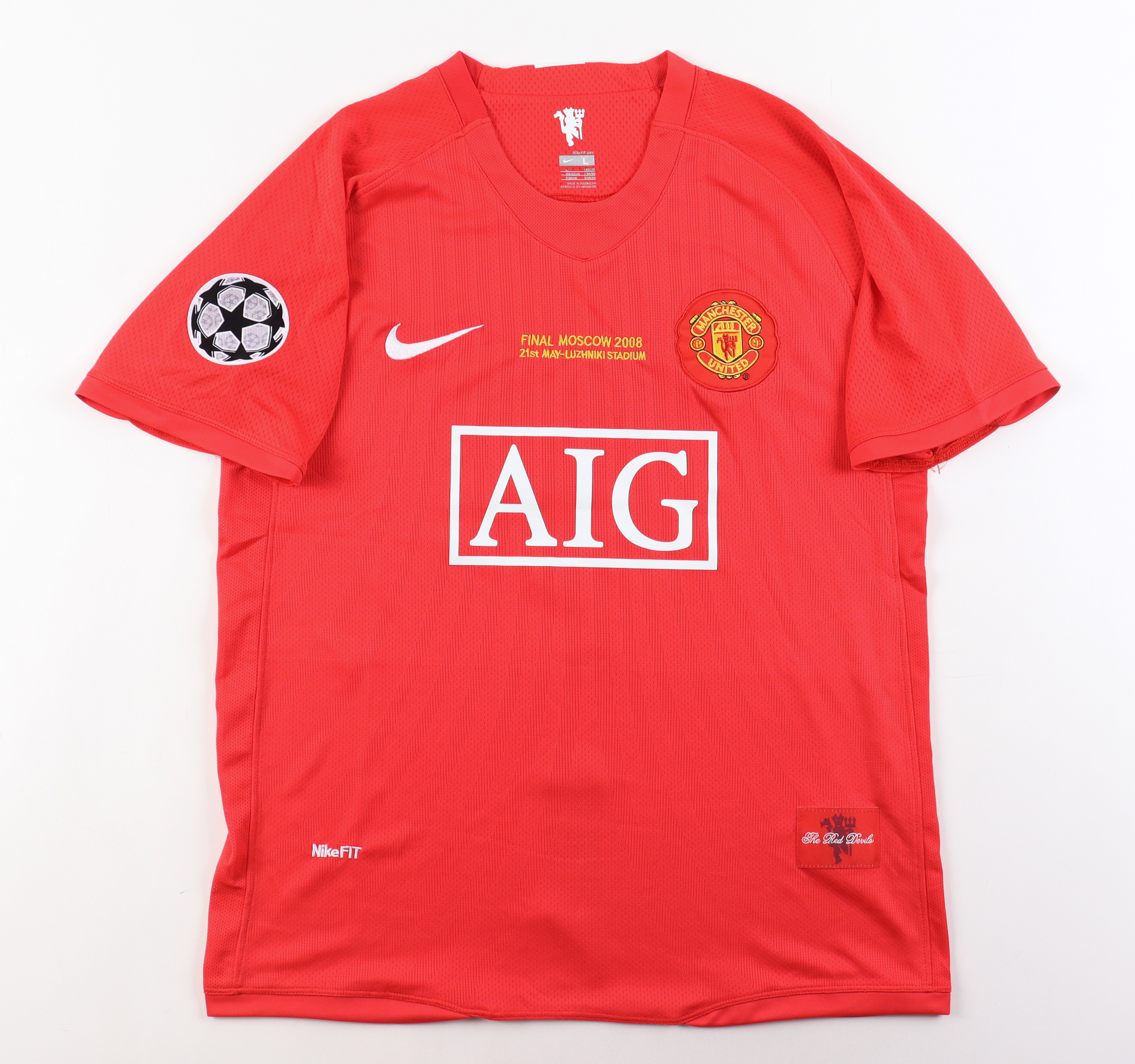 Nike style jersey. Everything is printed on, size L. Hand-signed by Cristiano Ronaldo.