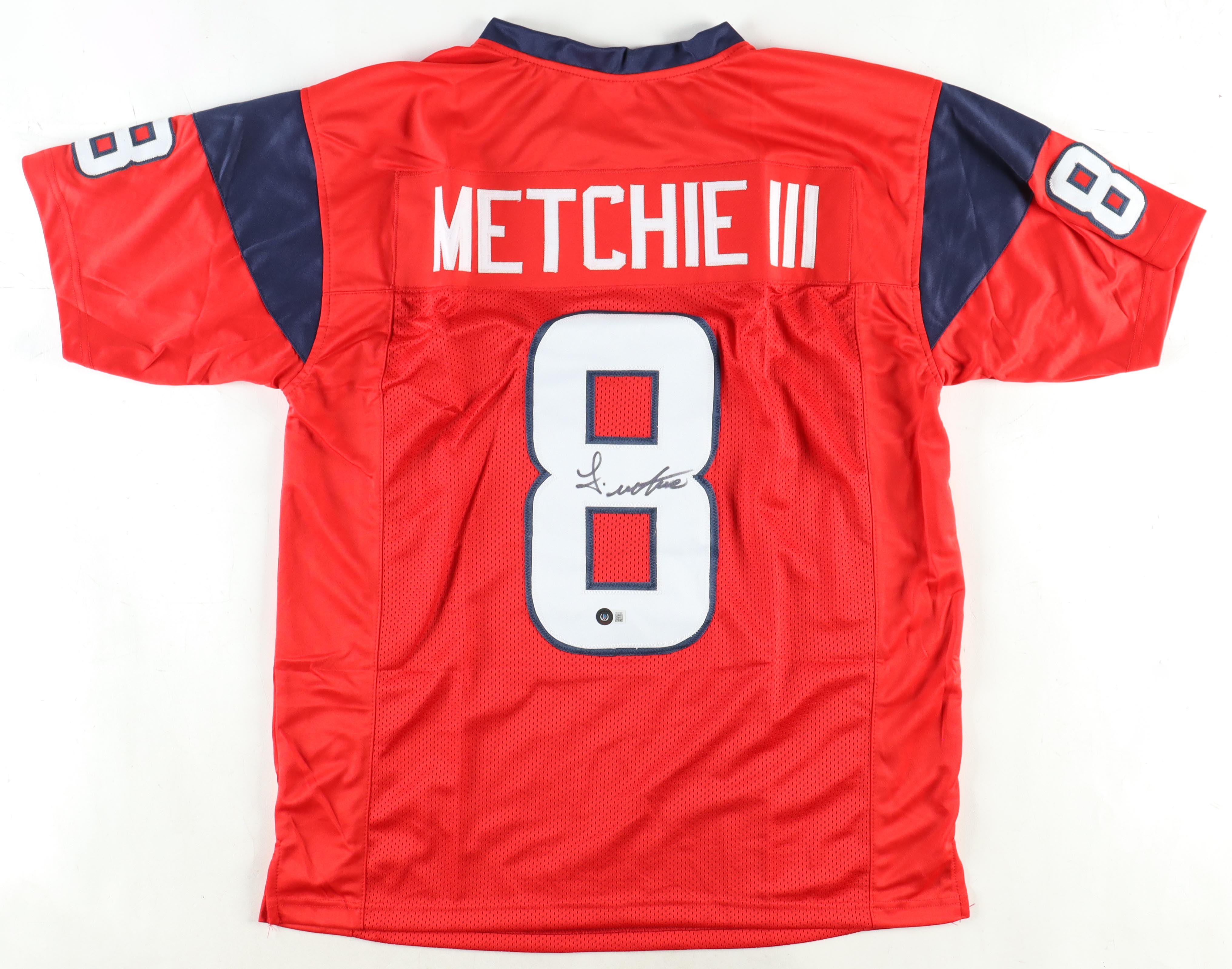 Custom jersey with everything sewn on, size XL. Hand-signed by John Metchie III.