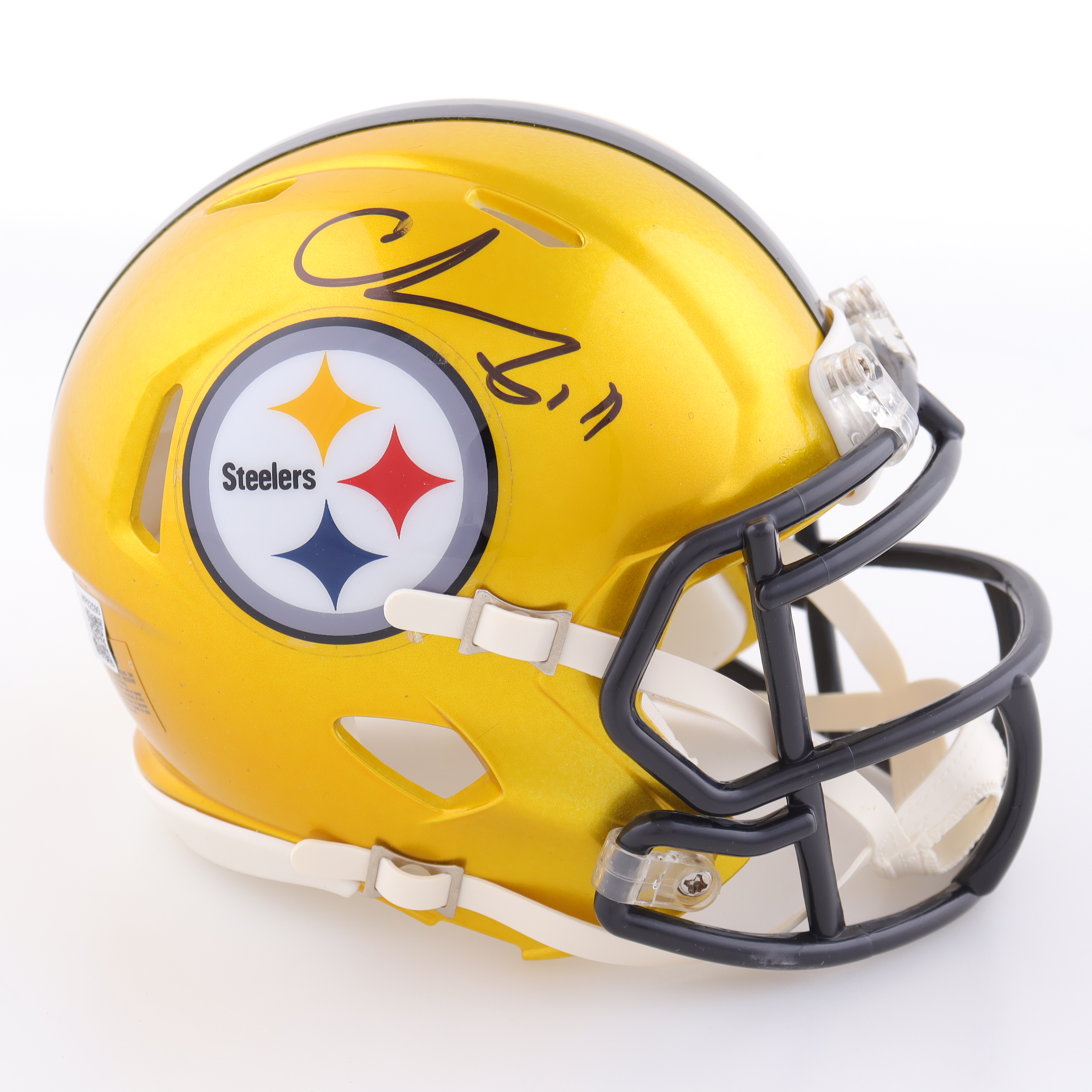 Riddell Pittsburgh Steelers Flash Alternate Speed mini helmet. Hand-signed by Chase Claypool.
